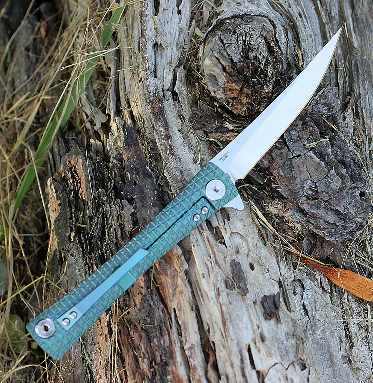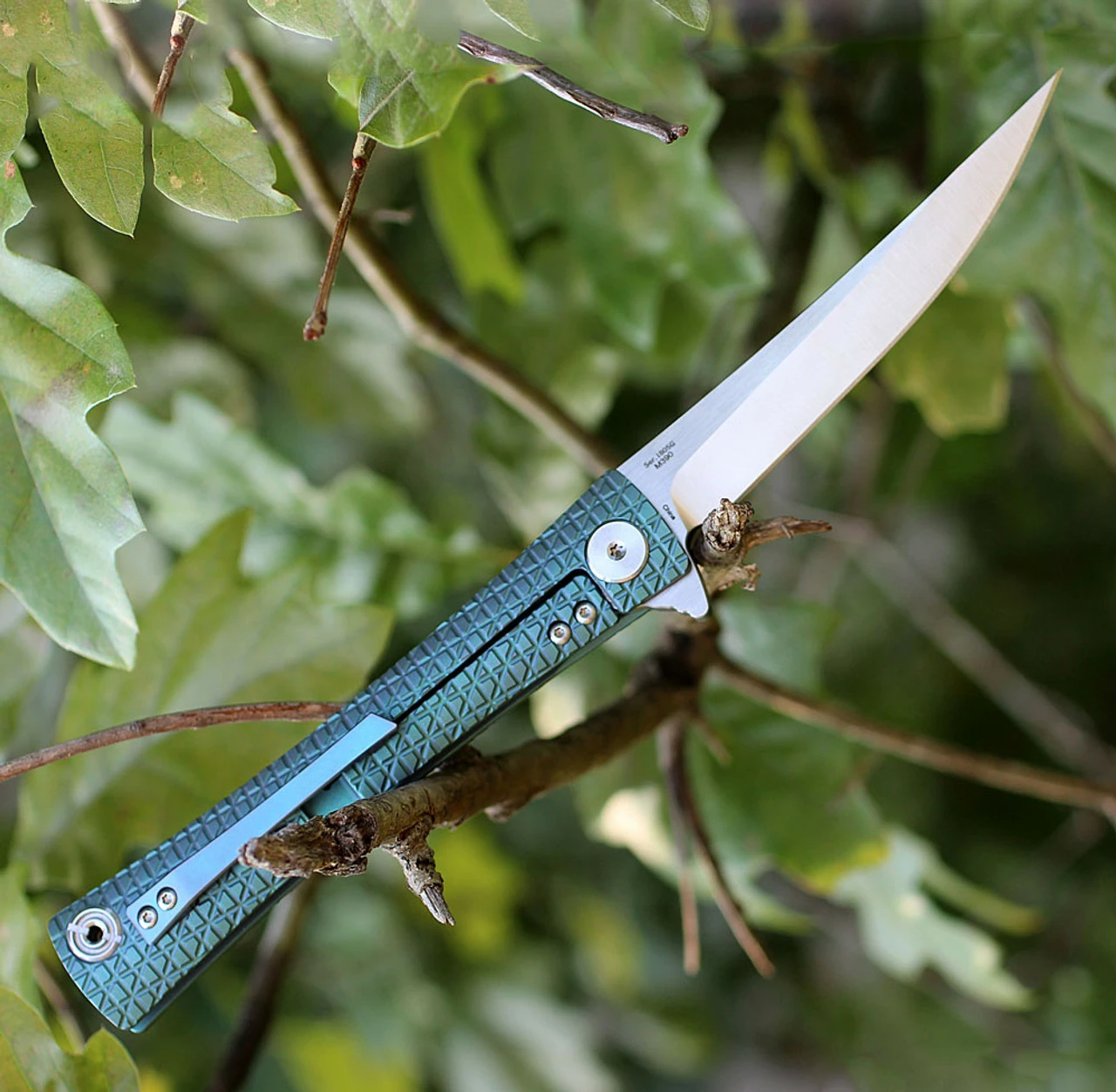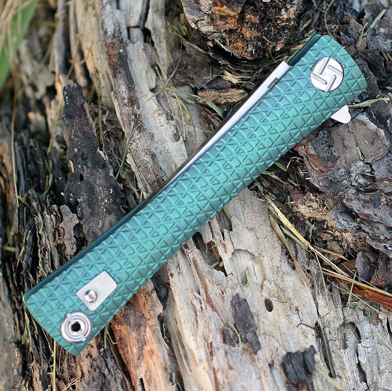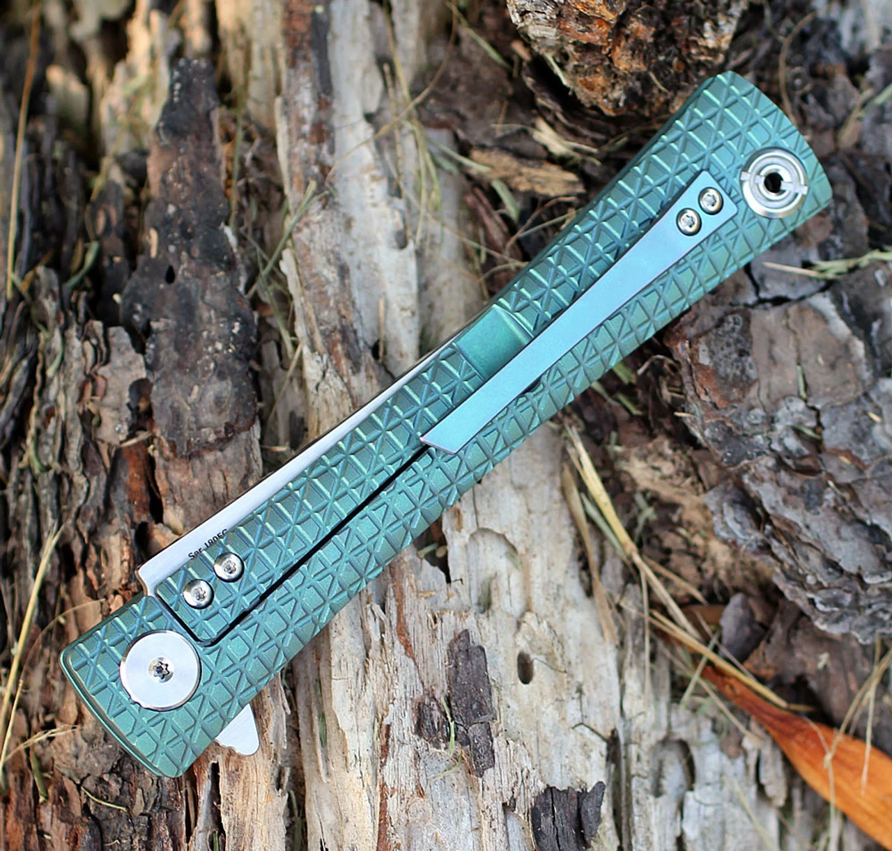 Artisan ATZ1805GGNM S Waistline, 4″ M390 Plain Blade, Green Titanium Handle