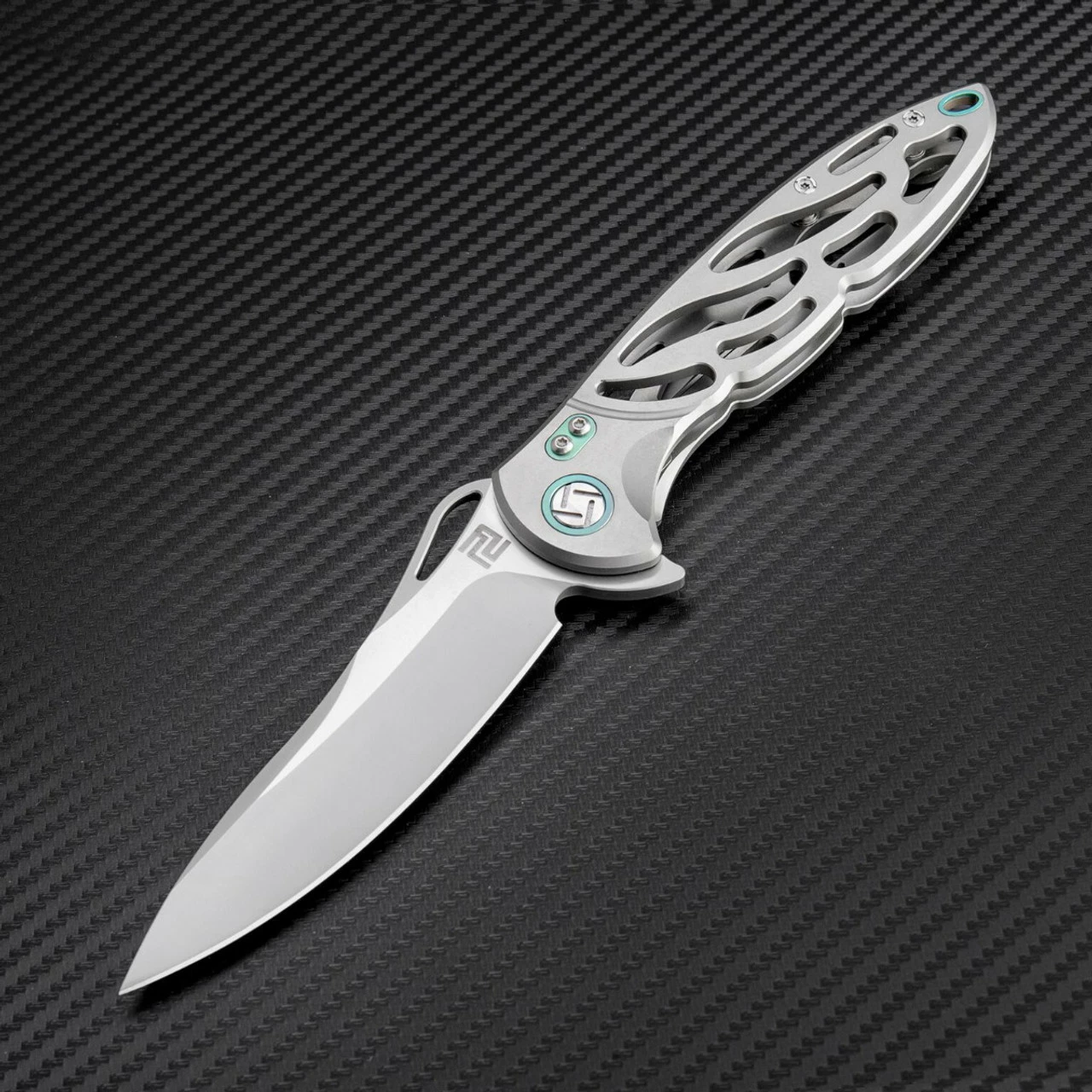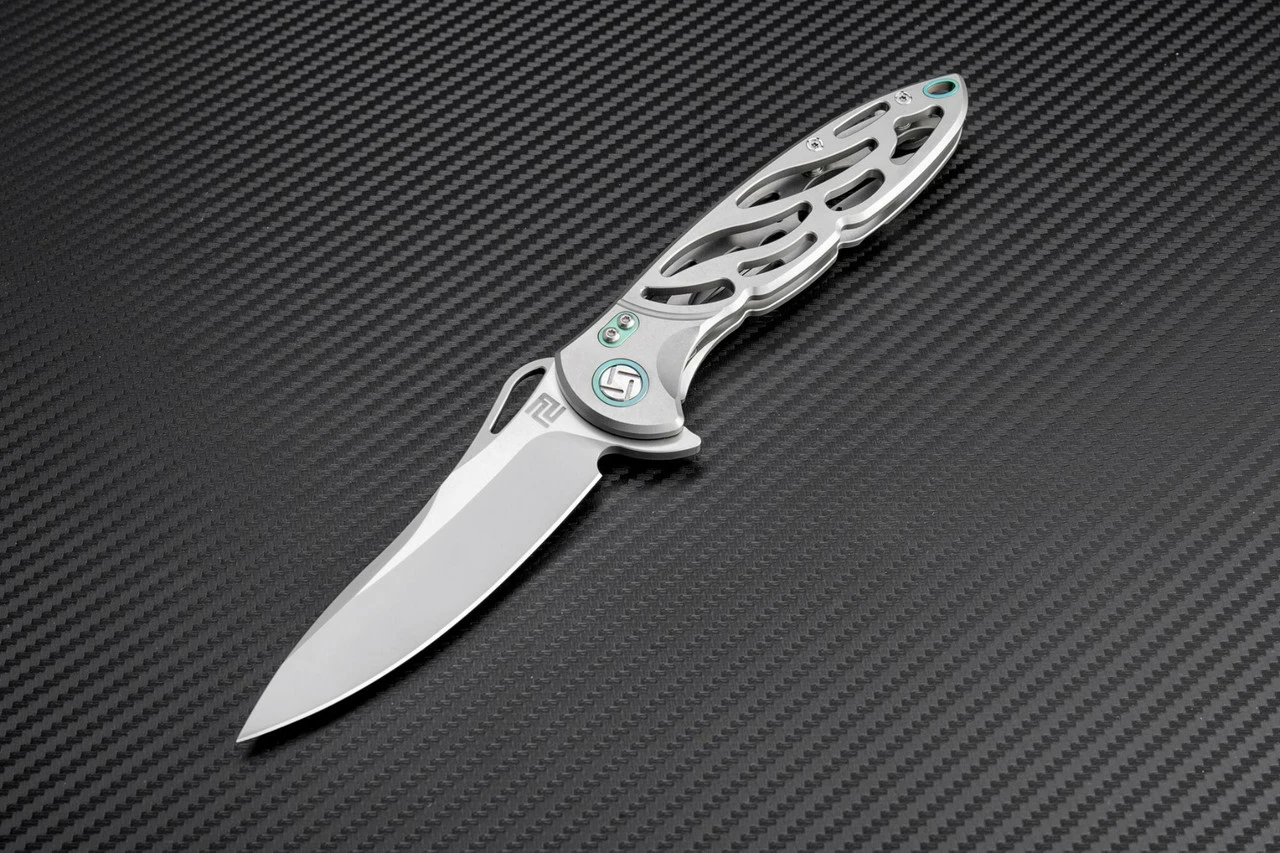 Artisan Dragonfly ATZ1801GGYM, 3.94″ M390 Plain Blade, Gray TC4 Titanium Handle