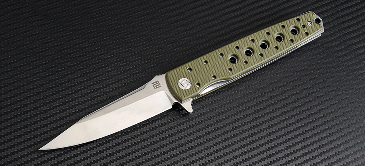Artisan Virginia ATZ1807PGNF, 3.94″ D2 Plain Blade, Flat Green G-10 Handle