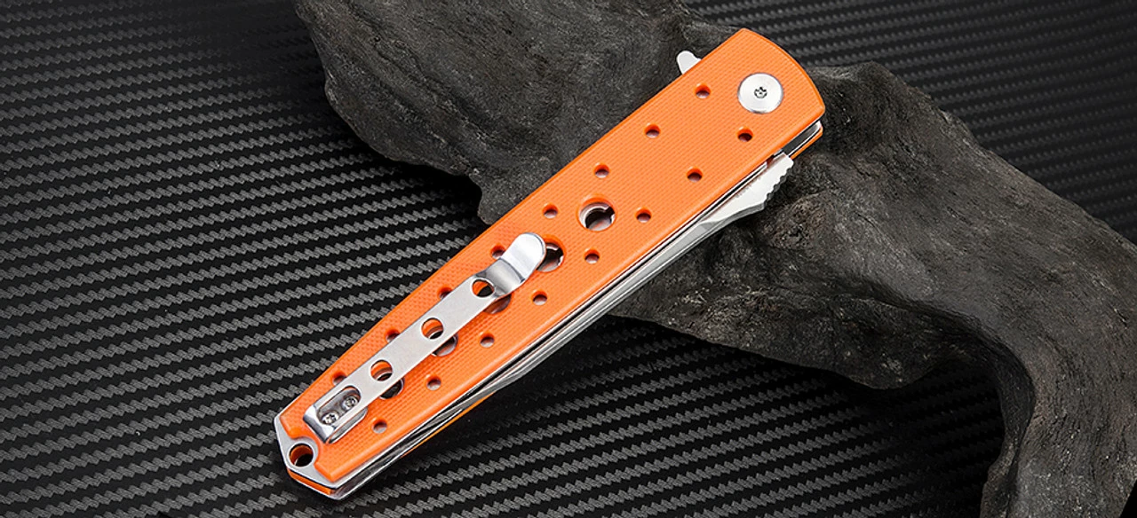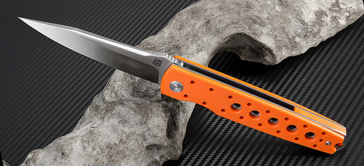 Artisan Virginia ATZ1807POEF, 3.94″ D2 Plain Blade, Flat Orange G-10 Handle