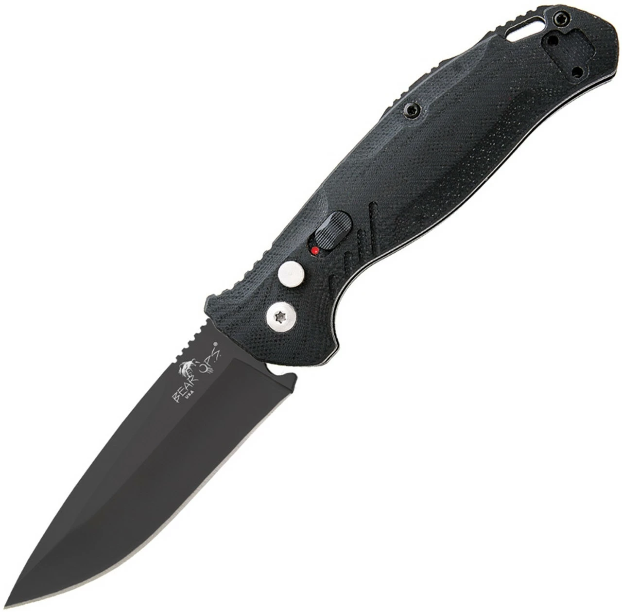 Bear Ops Bold Action XI Button Lock Automatic Knife ( BCAC1100B4B) – 3.25″ 14C28N Sandvik Black Blade, Black G10 Handle