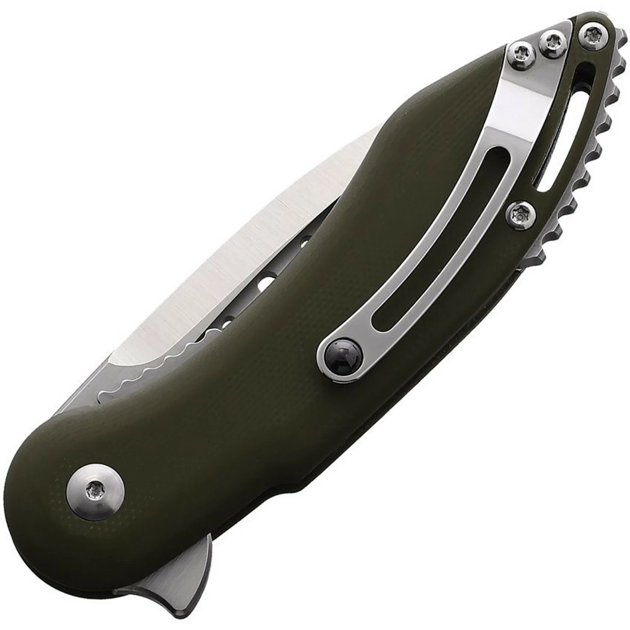 Begg Knives Mini Glimpse (BG006) 3.0″ Satin D2 Drop Point Plain Blade, Green Smooth G-10 Handle