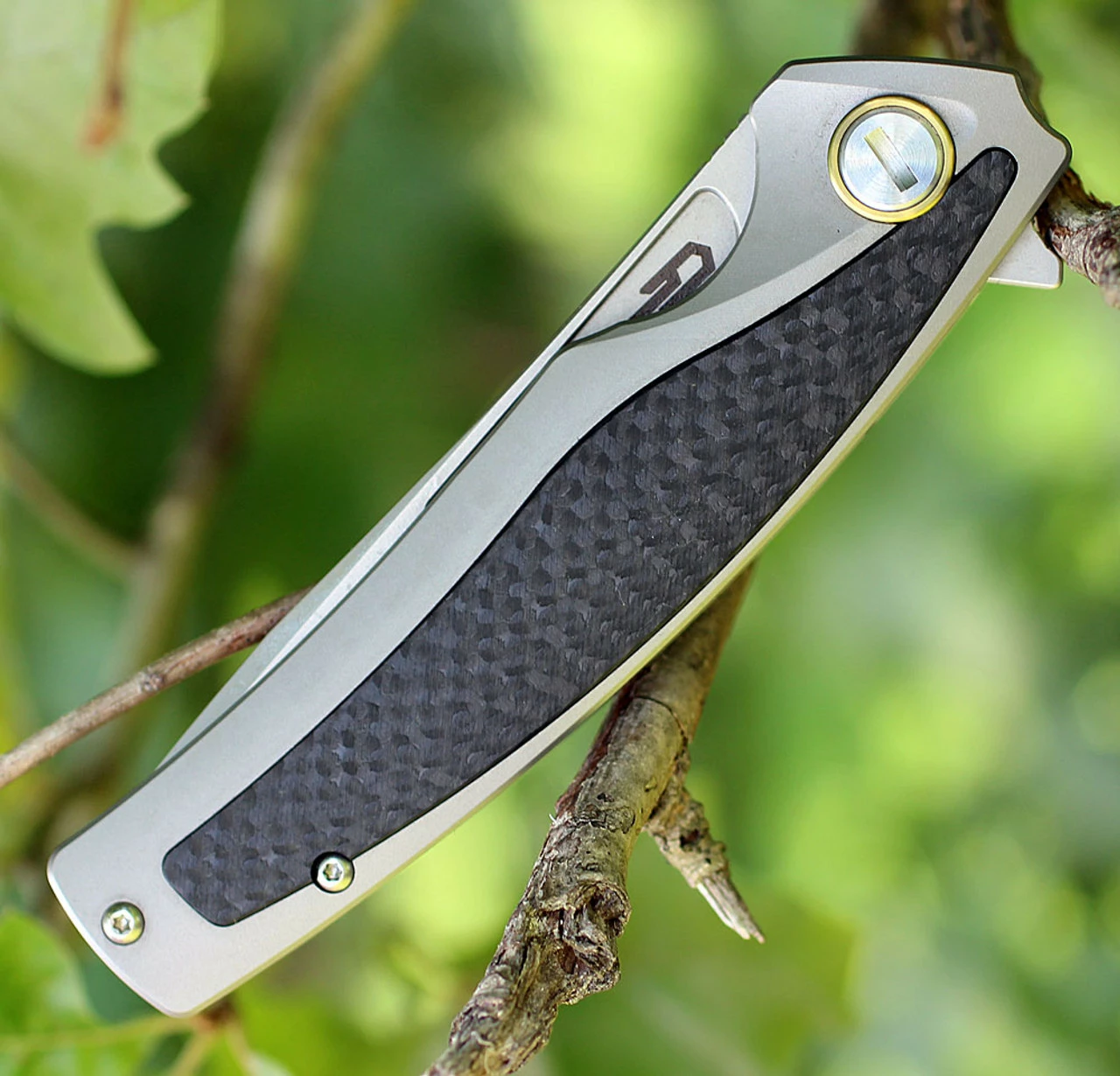 Bestech T1706B Predator, 3.6″ CPM-S35VN Plain Blade, Gray Titanium Handle w/Carbon Fiber Inlay