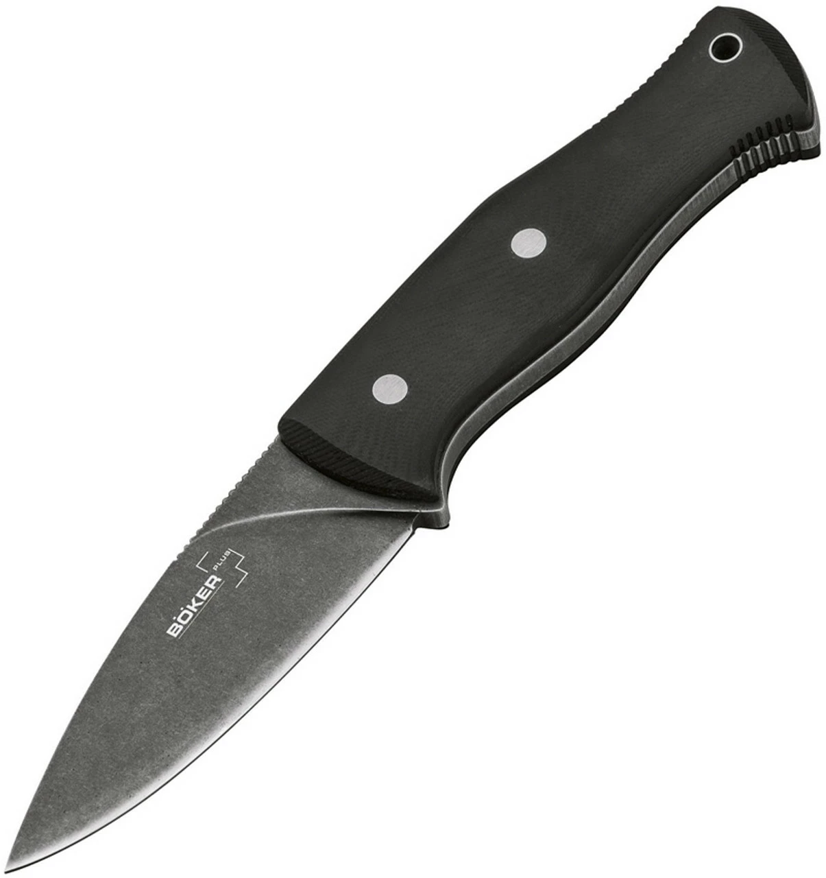 Boker Plus 02BO065 Farkas Bushcraft, 3.8″ Stonewash D2 Plain Blade, Black Micarta Handle
