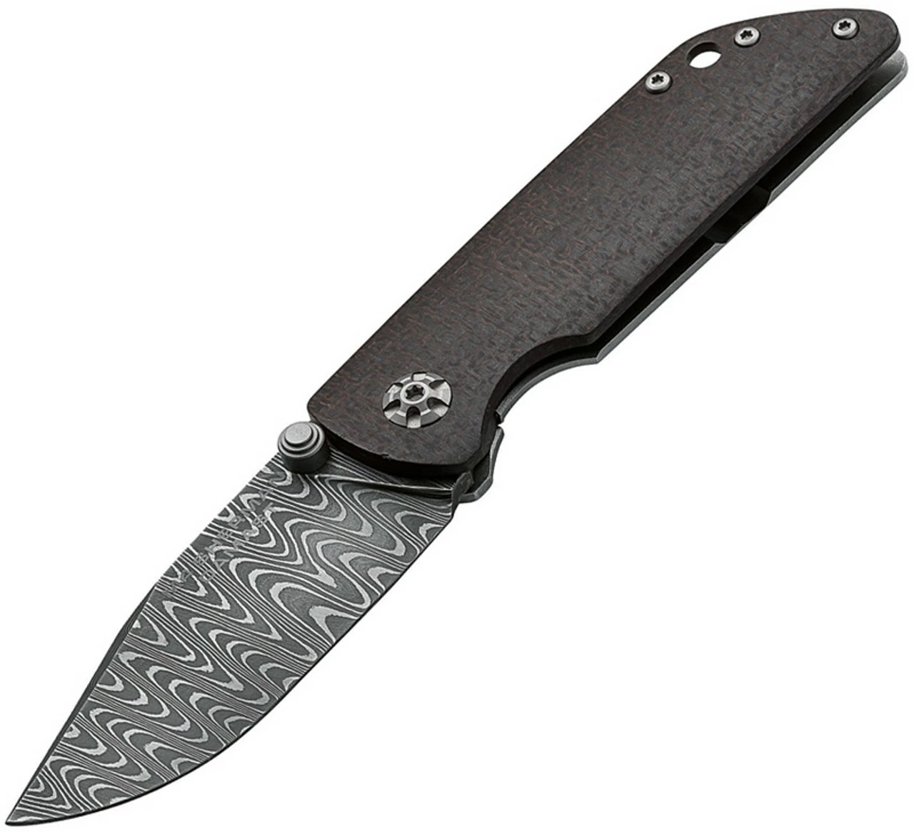 Boker Solingen Sherman Damascus (110662DAM) – 3.03″ Chad Nichols “Ladder” Damascus Clip Point Blade, Brown Jute Micarta Handle.