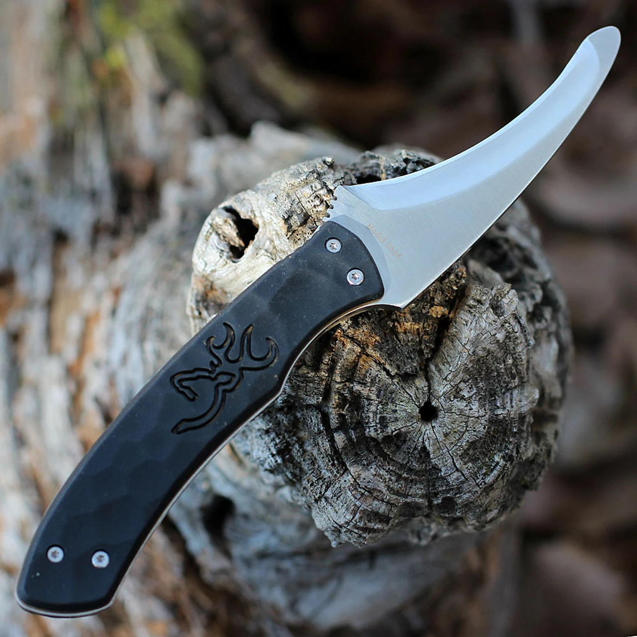 Browning Primal Gut Hook (3220424B) – 3.13″ 8Cr13MoV Satin Gut Hook Blade, Black Rubberized Polymer Handle