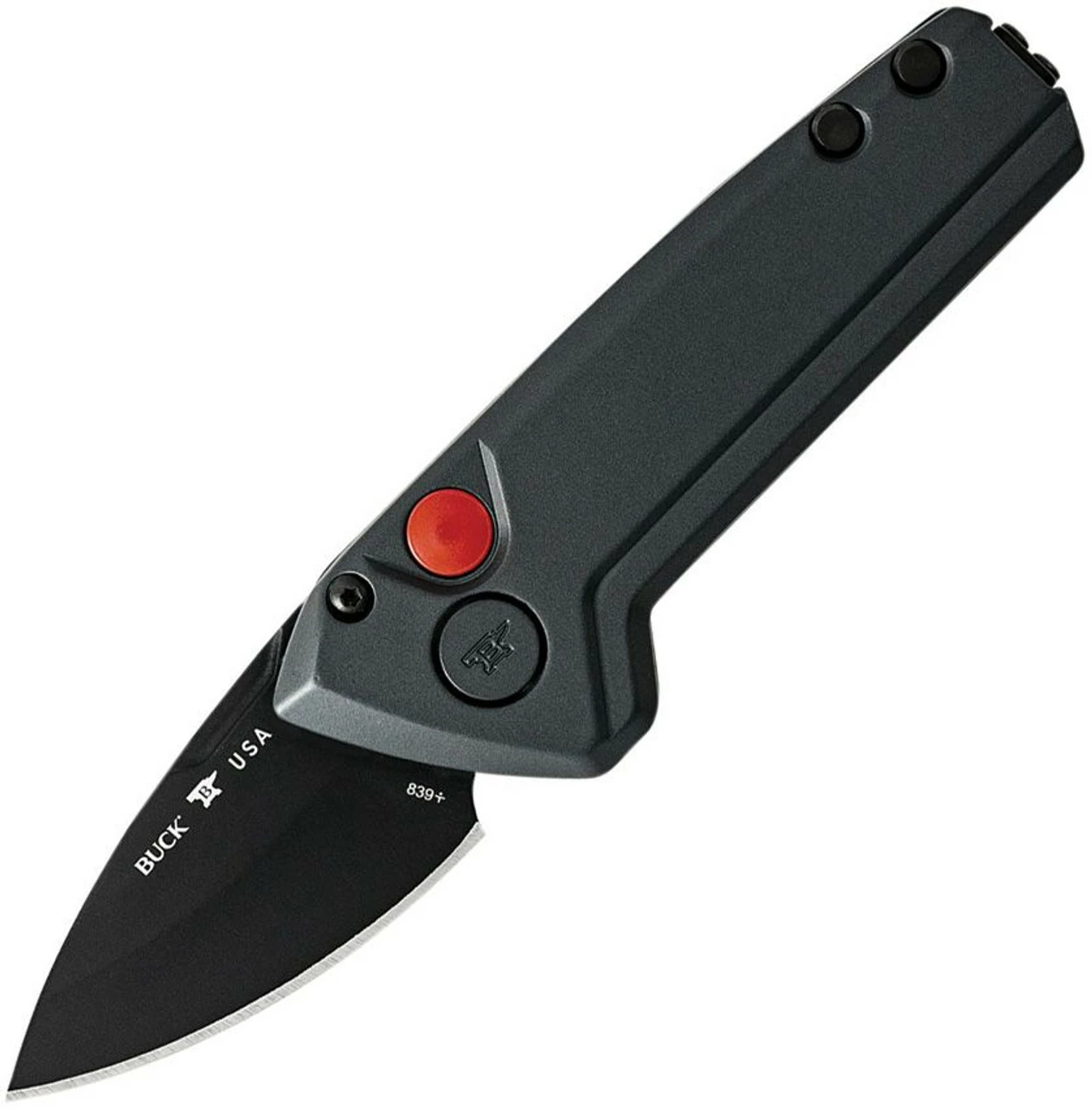 Buck Mini Deploy Automatic (BU839GYS1) 1.875″ 154CM Armor Black Cerakote Drop Point Plain Blade, Sniper Gray Coated Aluminum Handle