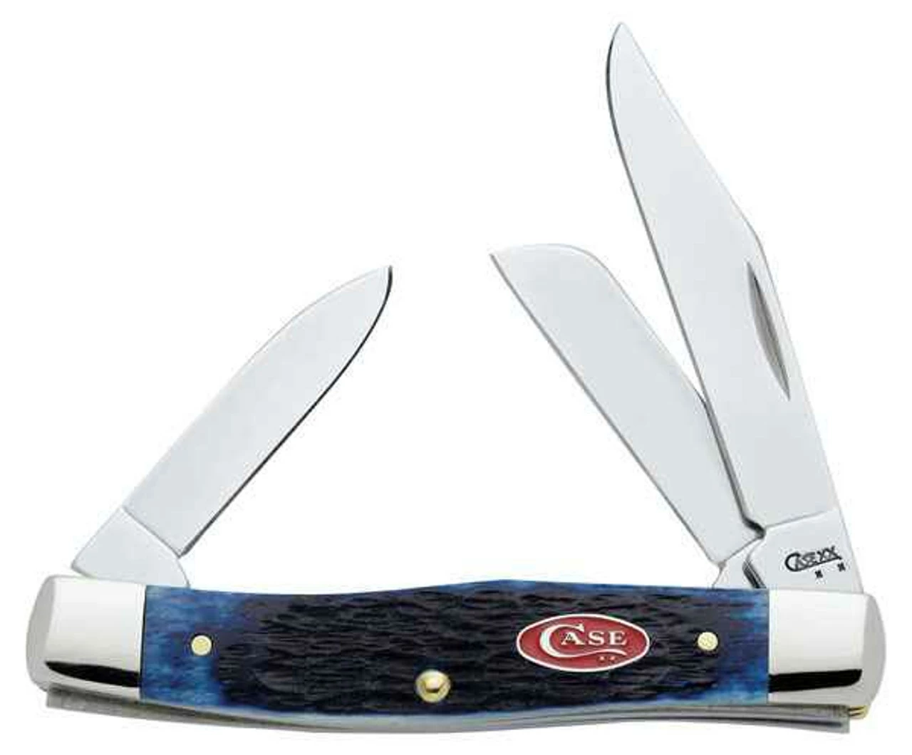 Case Knives presents Navy Blue Bone Series, One of the most popular and hard to find colors. The Navy Blue Bone knives feature richly dyed Rogers Corn Cob jigged Navy Blue Bone, Brass pins, nickel silver bolsters, Case Bright Red Shield and Polished Tru-Sharp surgical steel blades. Case knives are proudly made is the USA