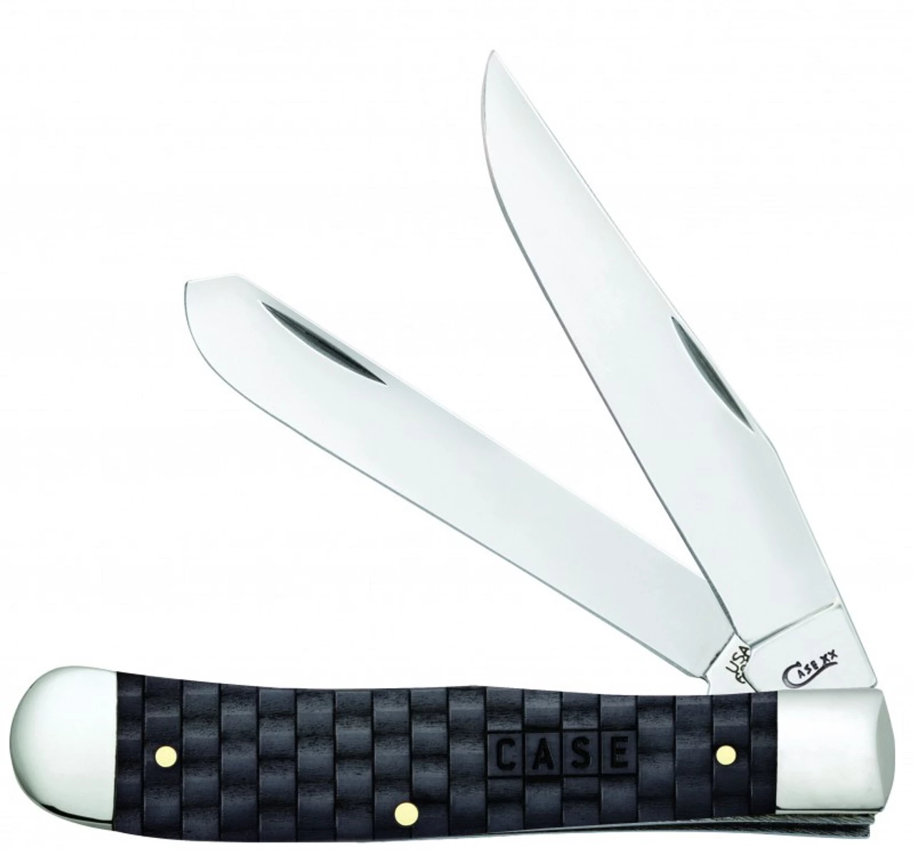 Case Basket Weave Trapper 15504, 4 1/8″ Closed Length SS Blades, Natural Bone Handle w/Charcoal Color Wash