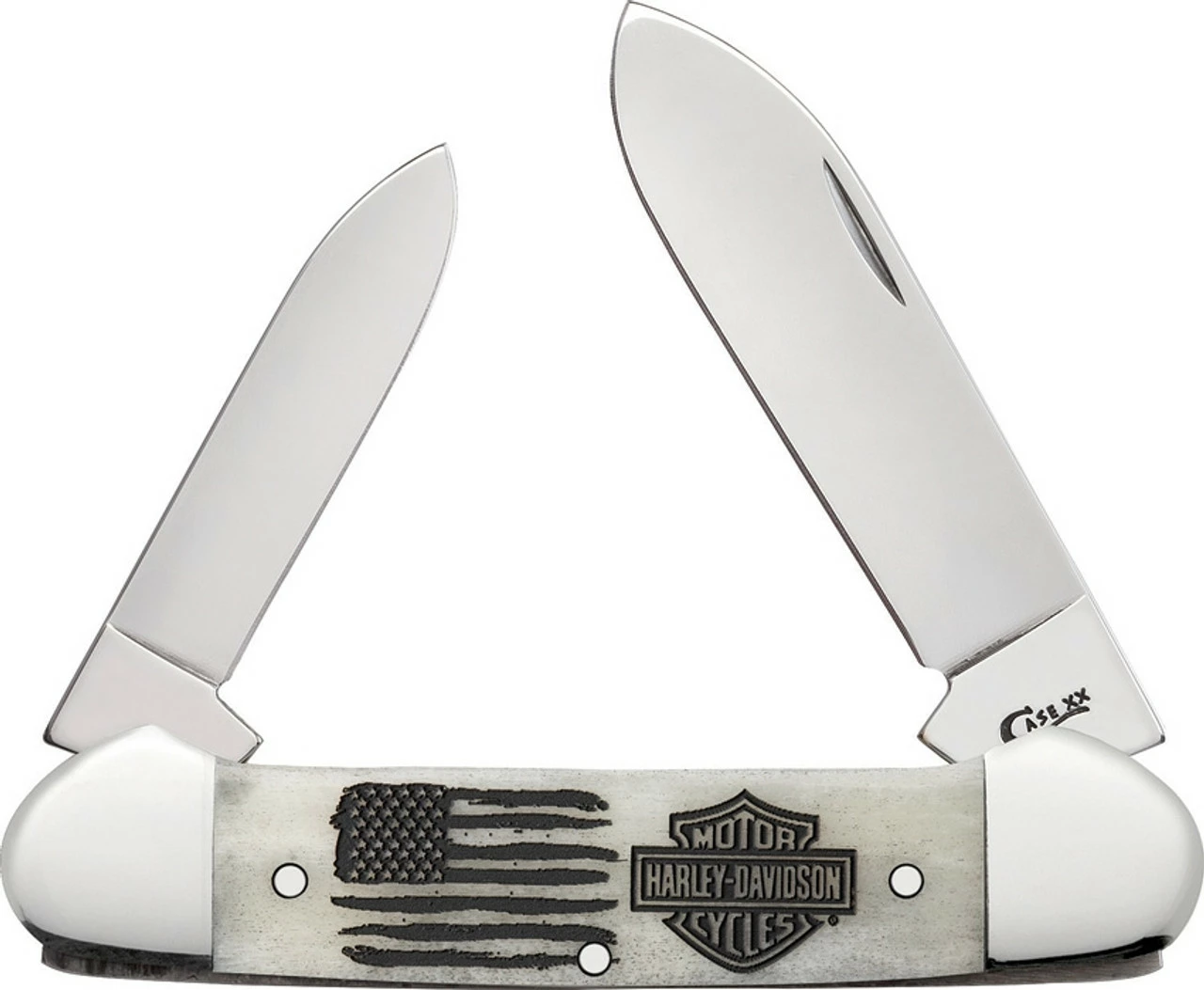 Case Canoe 52217 Harley Davidson Embellished Smooth Natural Bone Handle (62131 SS)