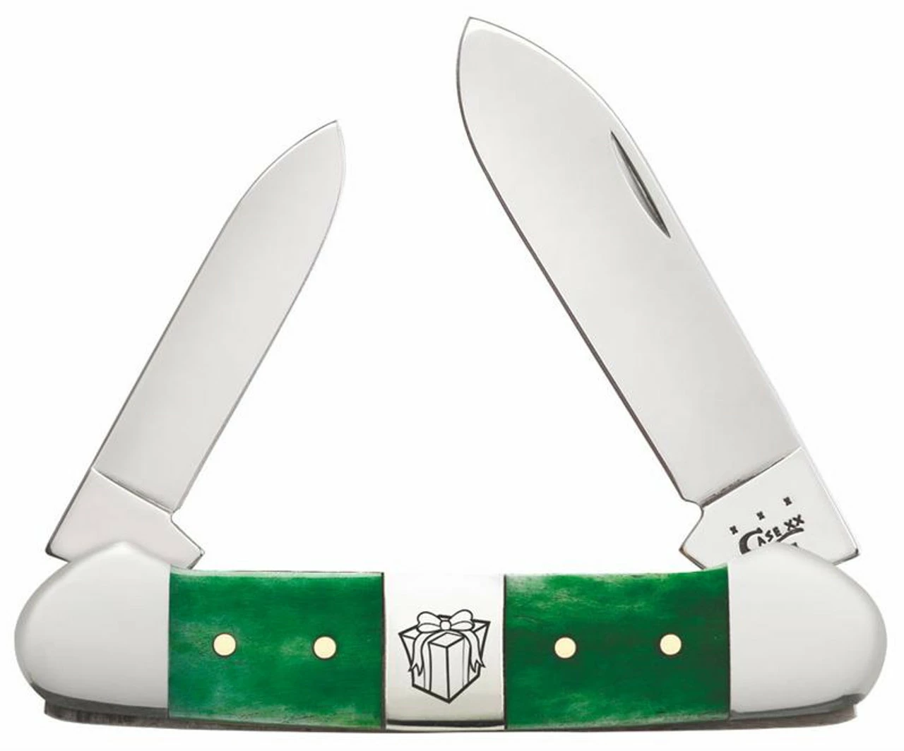 Honoring the happiest season of all, this holiday-themed series combines Case quality with Christmas tradition. Hand-crafted handles of smooth, Green Bone feature unique Center Bolster holiday embellishments, Nickel Silver Bolsters and Tru-Sharp surgical steel blades.