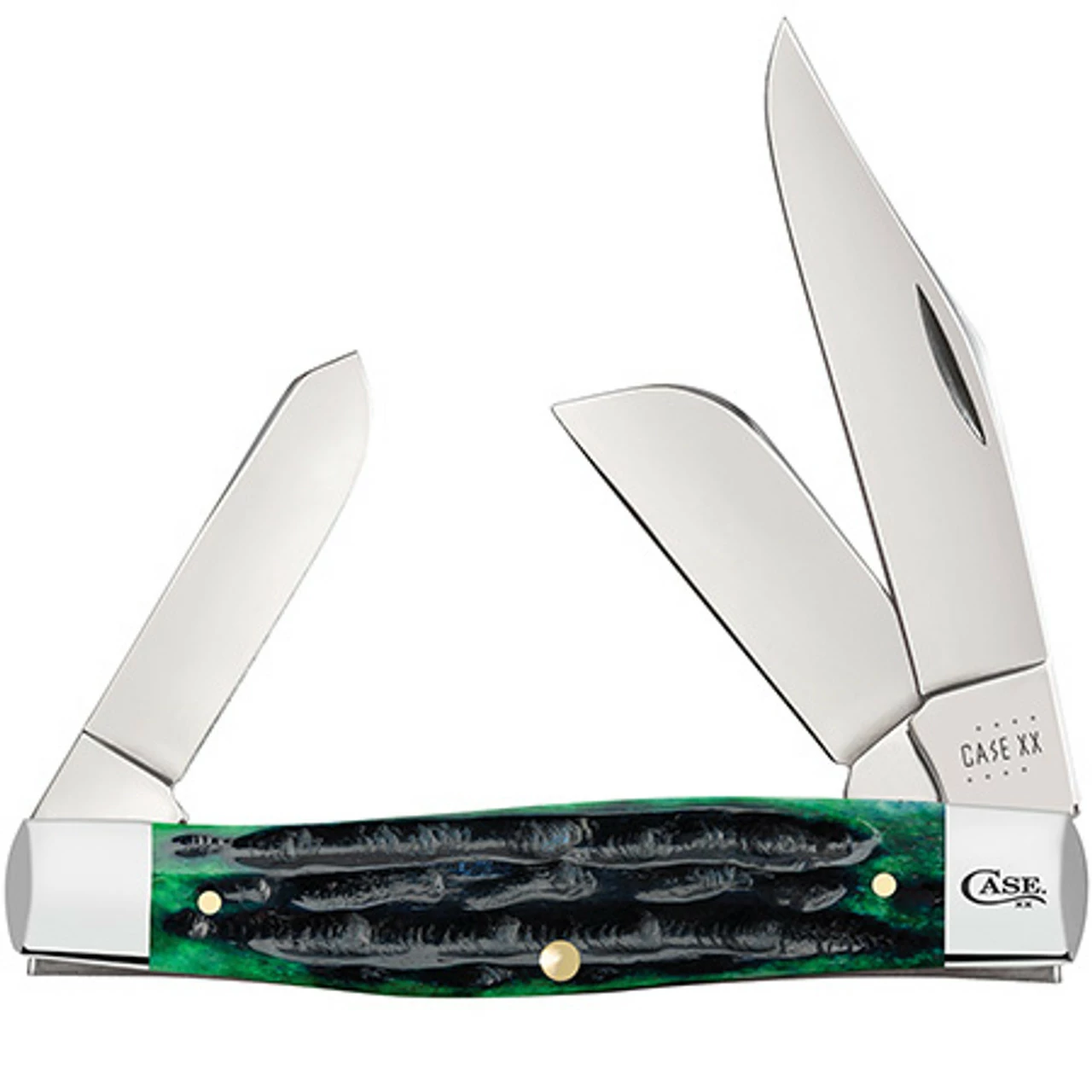 Case Large Stockman (6375 SS) Tru-Sharp Stainless Steel Clip, Sheepfoot and Spey Blades, Deep Canyon Jig Hunter Green Bone Handle