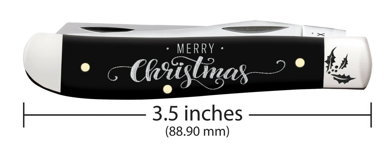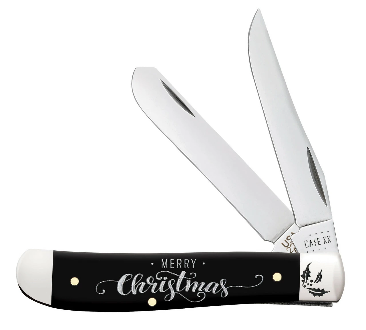 Case Trapper Merry Christmas (10619) – Tru-Sharp Surgical Stainless Steel Clip and Spey Blade, Merry Christmas Engraved Black Synthetic Handle(2207 SS)