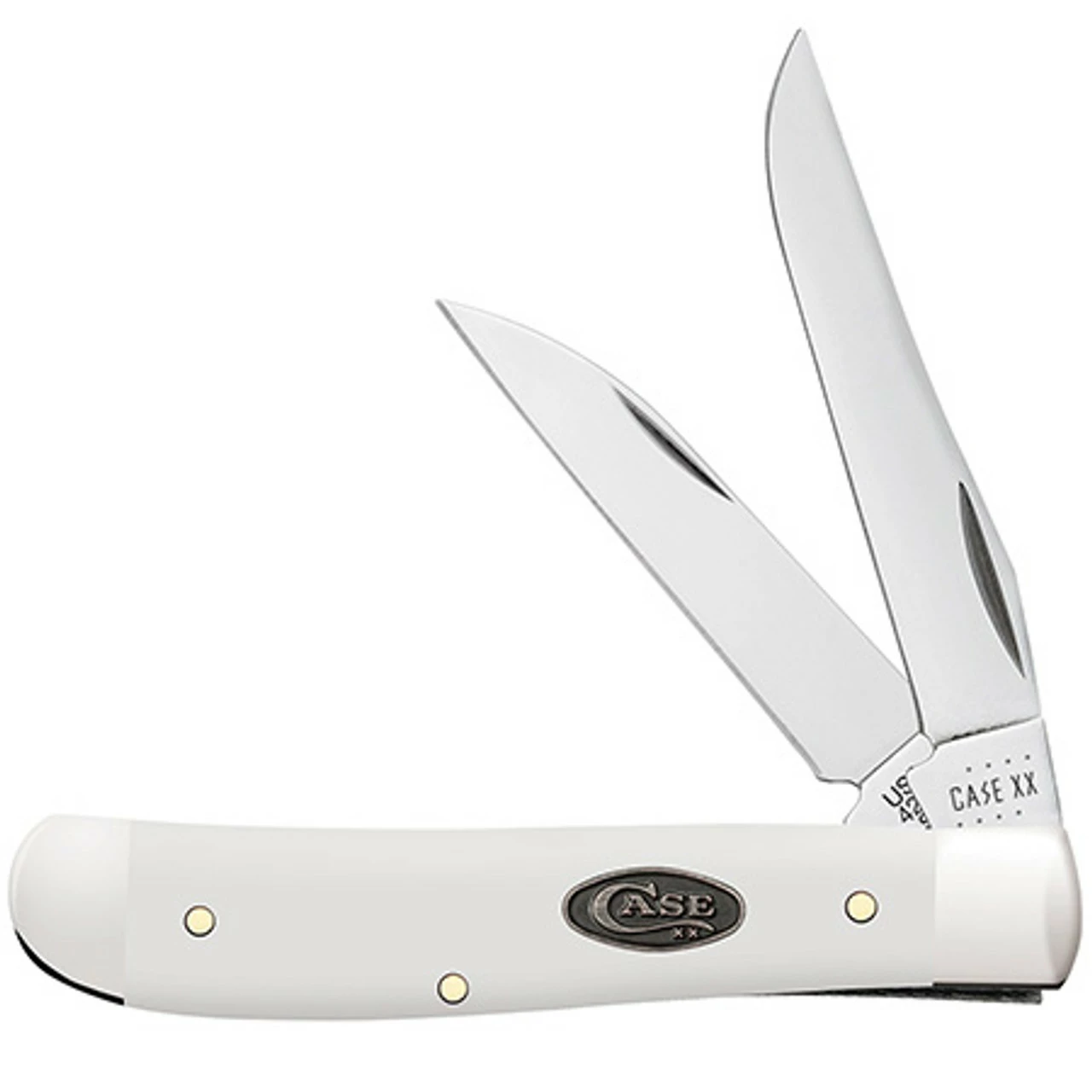 Case Mini Trapper 63965 – 2.75in Tru-Sharp Surgical Steel Clip and Wharncliffe Blades, White Synthetic Handle (4207W SS)