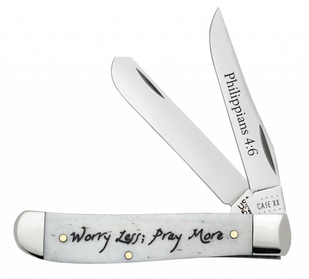 Case Mini Trapper Religious Sayings – Philippians 4:6 – 60869 Embellished Smooth Natural Bone Handle (6207 SS)
