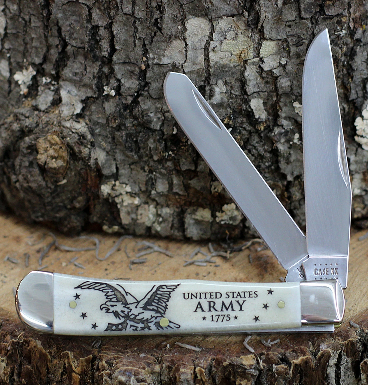 Case Trapper 15034 U.S. Army Embellished Smooth Natural Bone Handle (6254 SS)