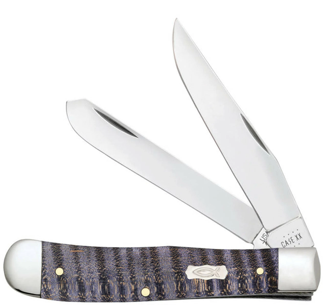 - Smooth Purple Curly Wood handle; Case Ichthus shield