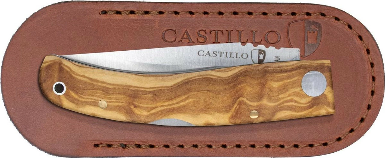 Castillo Knives Navaja Lockback Folding, C1OLW, 3″ Satin Sandvik 14C28N Blade, Olivewood Handle