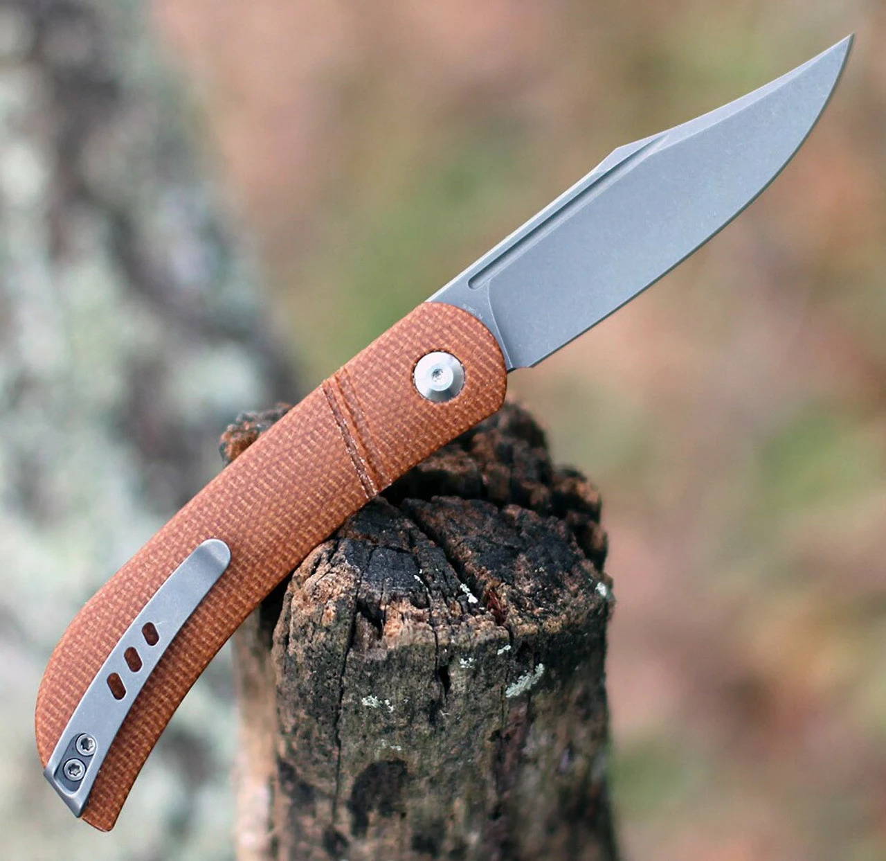 CIVIVI Appalachian Drifter Folding Knife (C2015A)- 2.96″ Stonewash CPM-S35VN Clip Point Blade, Brown Micarta Handle