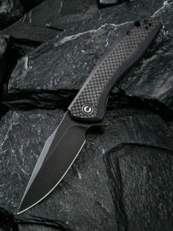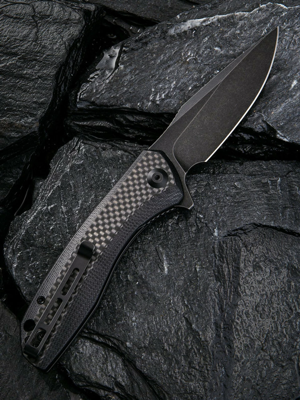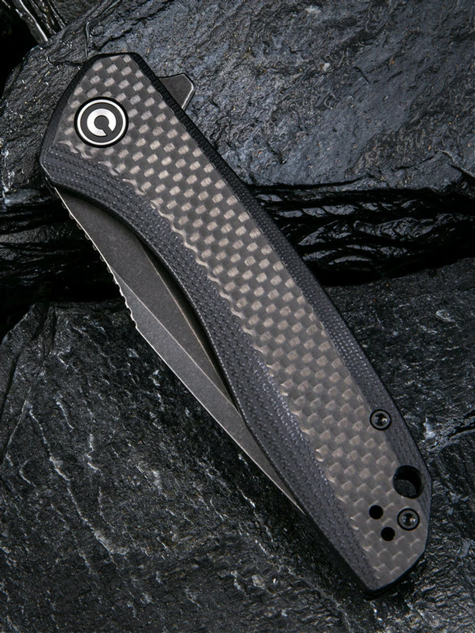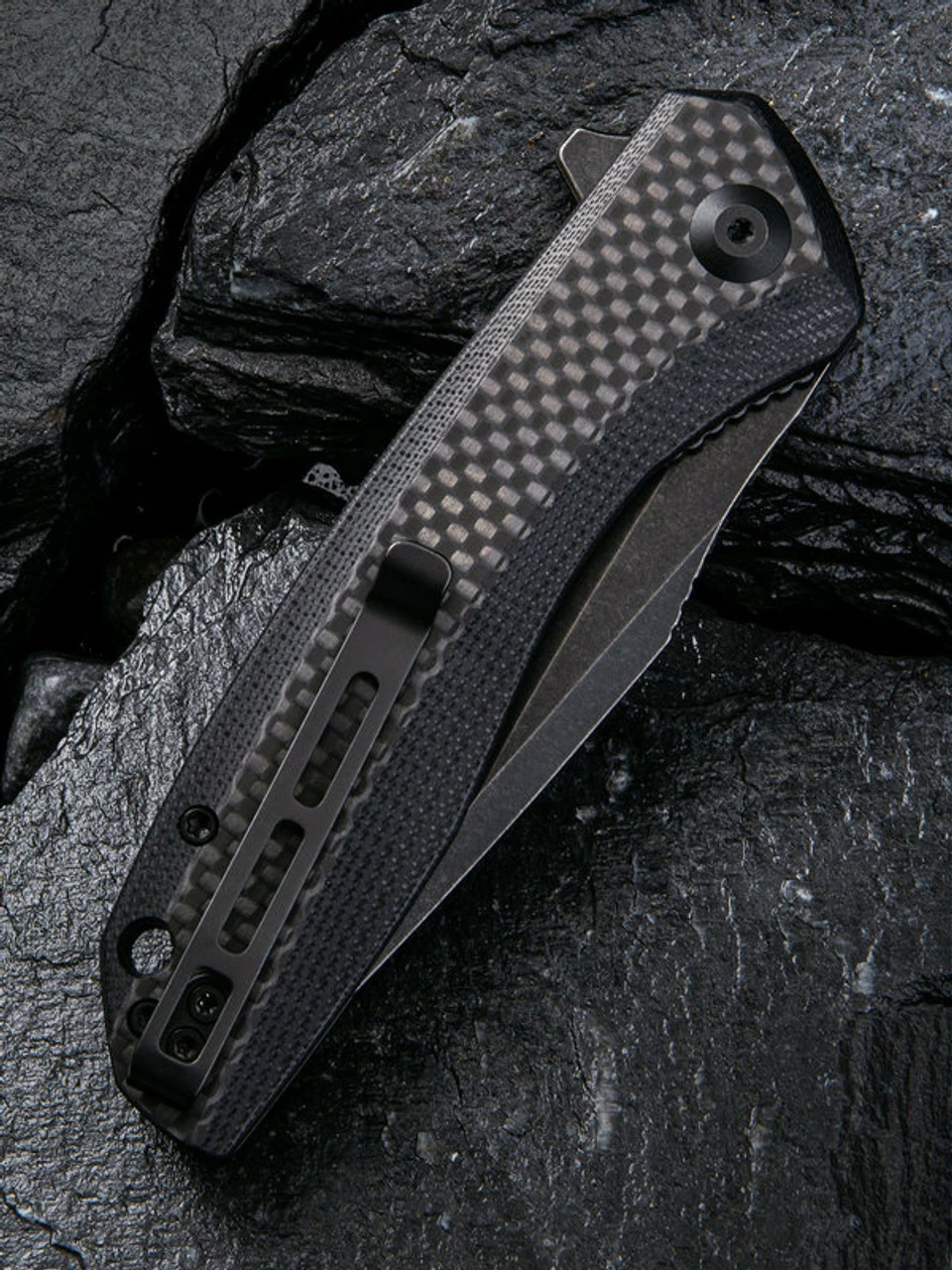 CIVIVI Baklash Folding Knife (C801I)- 3.50″ Blackwashed 9Cr18MoV Drop Point Blade, Black G-10 and Carbon Fiber Overlay Handles
