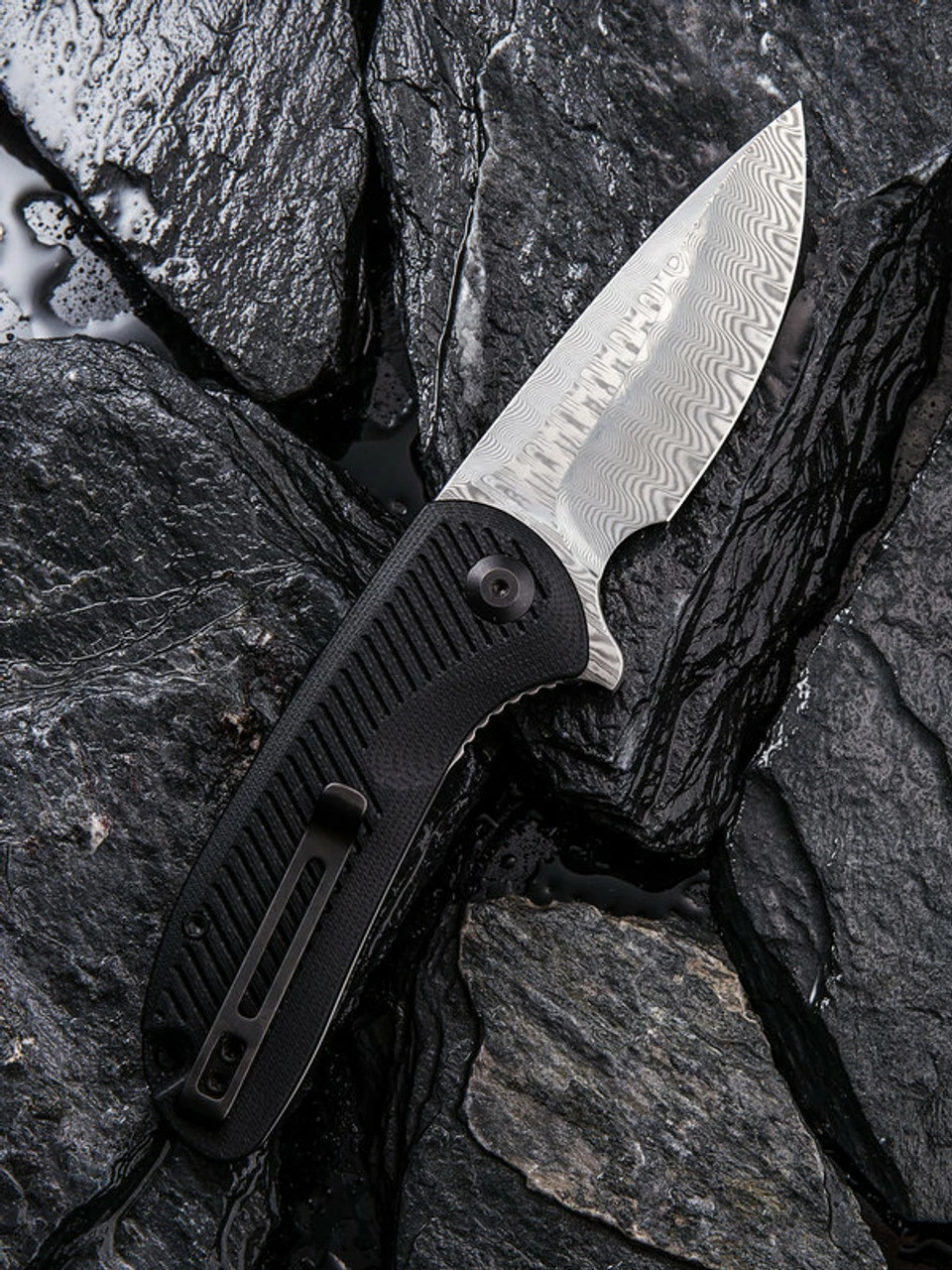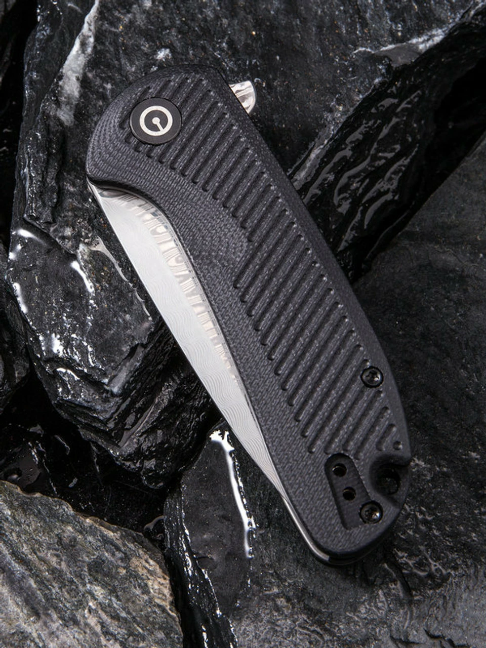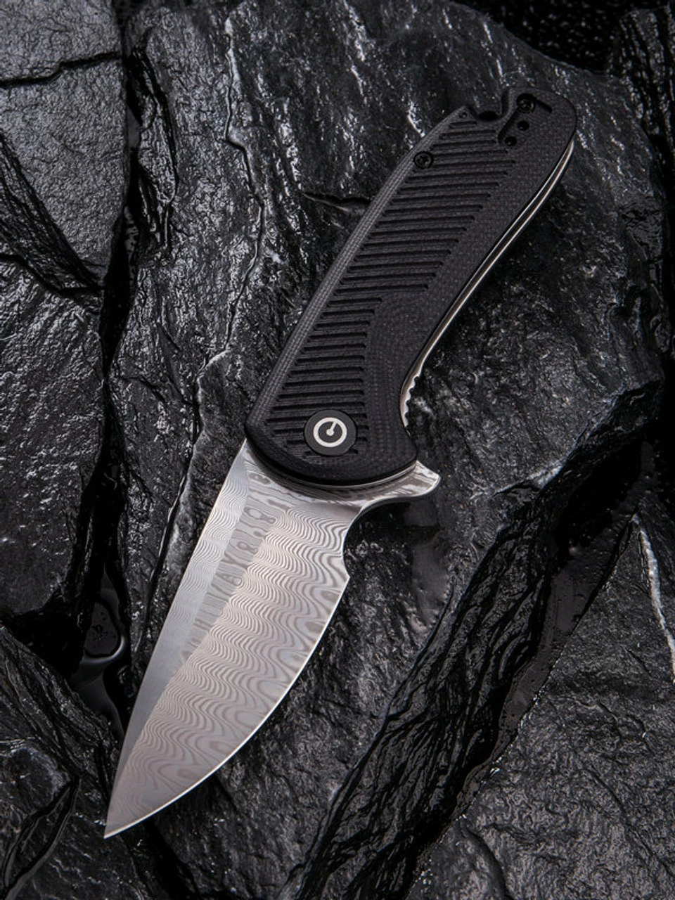 CIVIVI Durus Folding Knife (C906DS)- 3.00″ Damascus Drop Point Blade, Black G-10 Handles