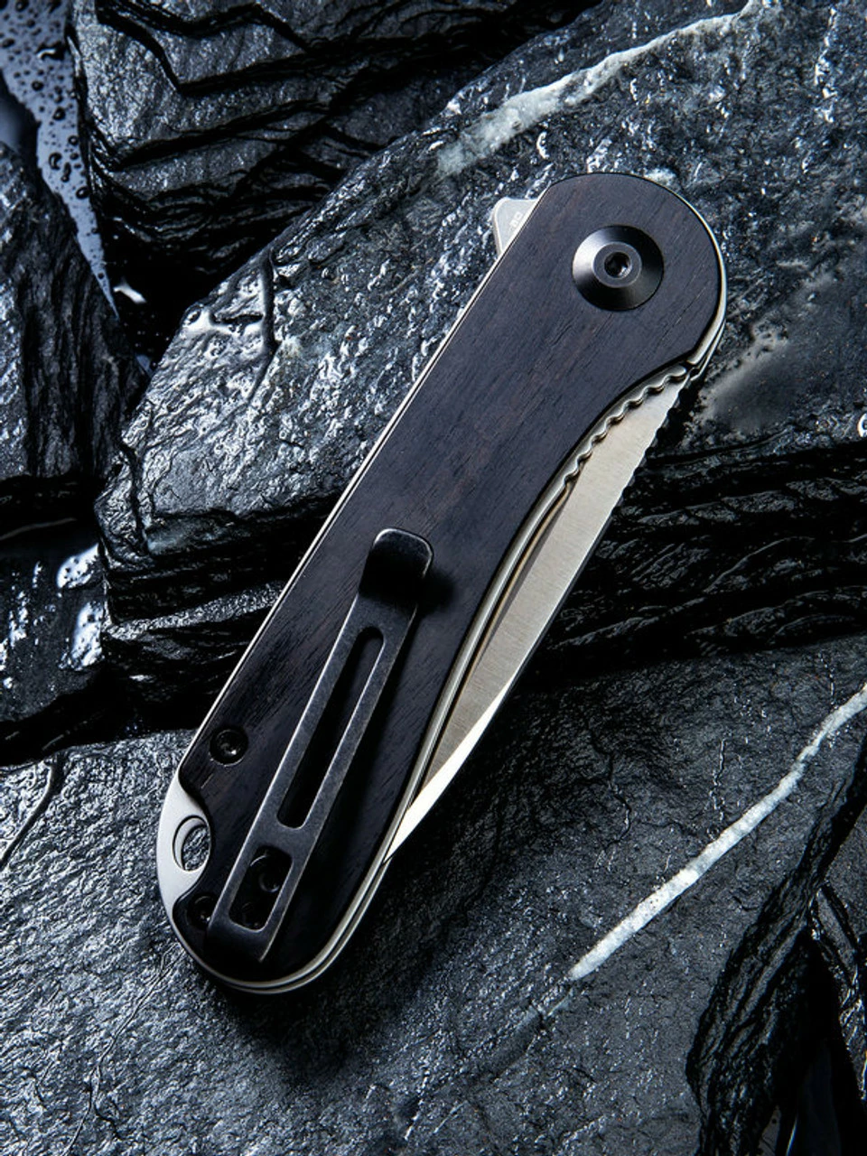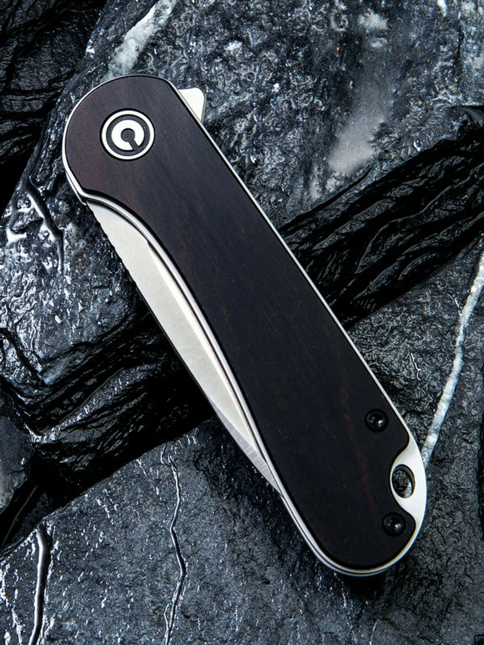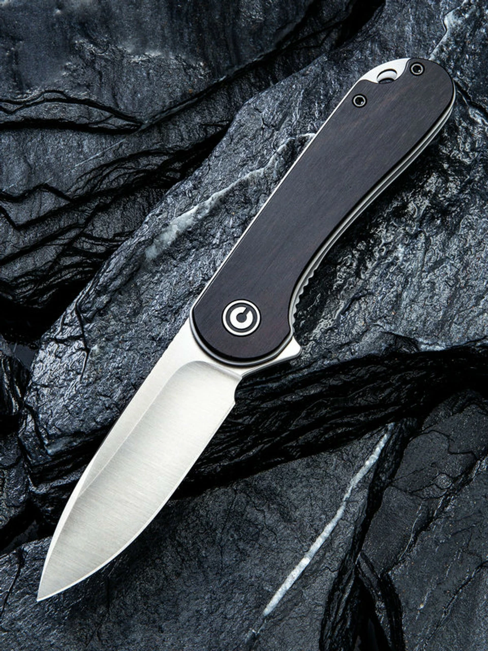 CIVIVI Elementum Folding Knife (C907D)- 2.96″ Satin D2 Drop Point Blade, Black Ebony Wood Handles