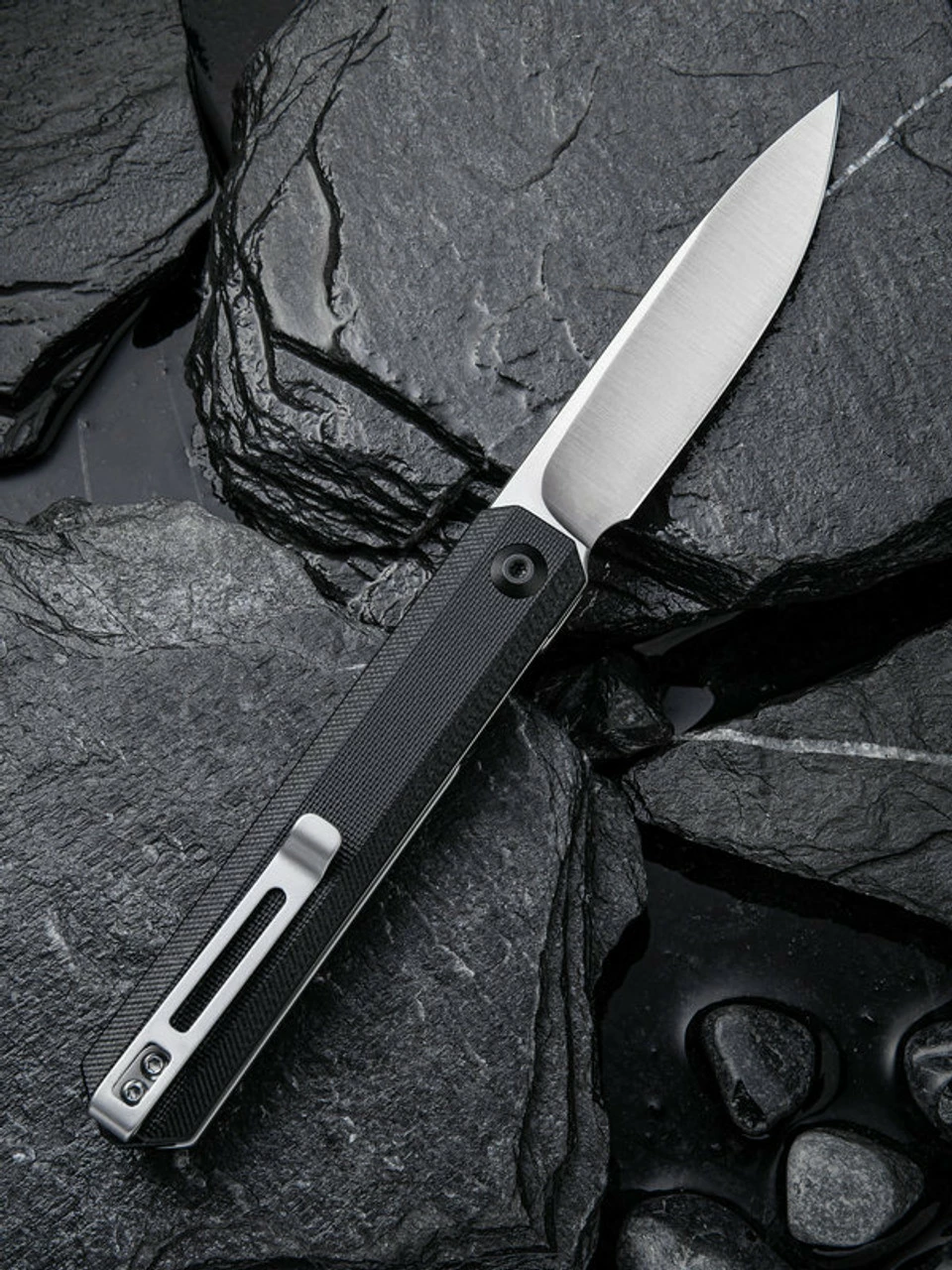 CIVIVI Exarch Folding Knife (C2003C)- 3.22″ Satin D2 Drop Point Blade, Black G-10 Handles