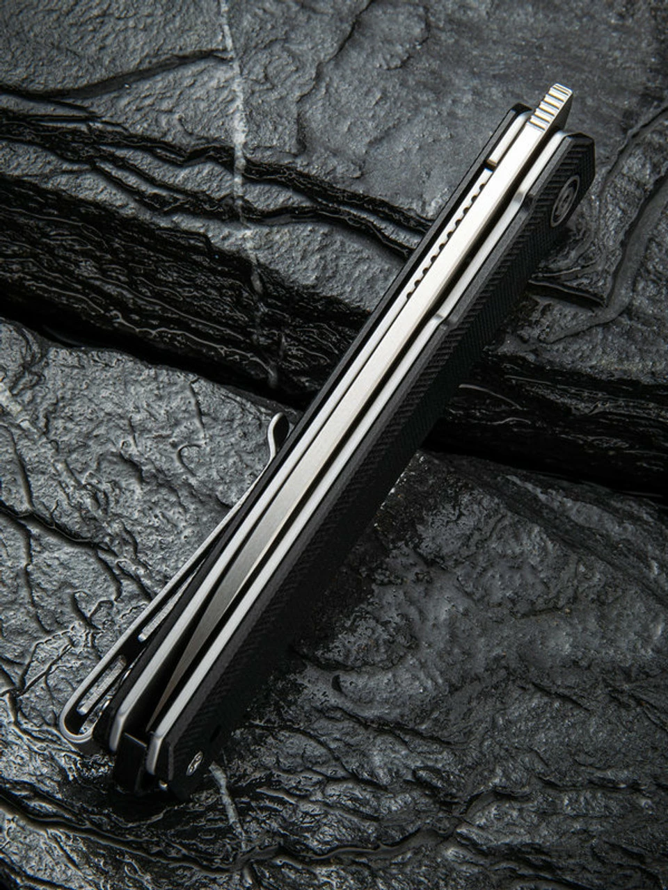The CIVIVI Exarch is an excellent choice for a gentleman’s folder. It has a slim, symmetrical design with smooth ball-bearing opening action and a front flipper opener. The textured handle provides a solid grip and the holes facilitate the included clip being positioned for right or left side carry. If you’re looking for a great EDC knife to slip into your pocket, the CIVIVI Exarch is it.
