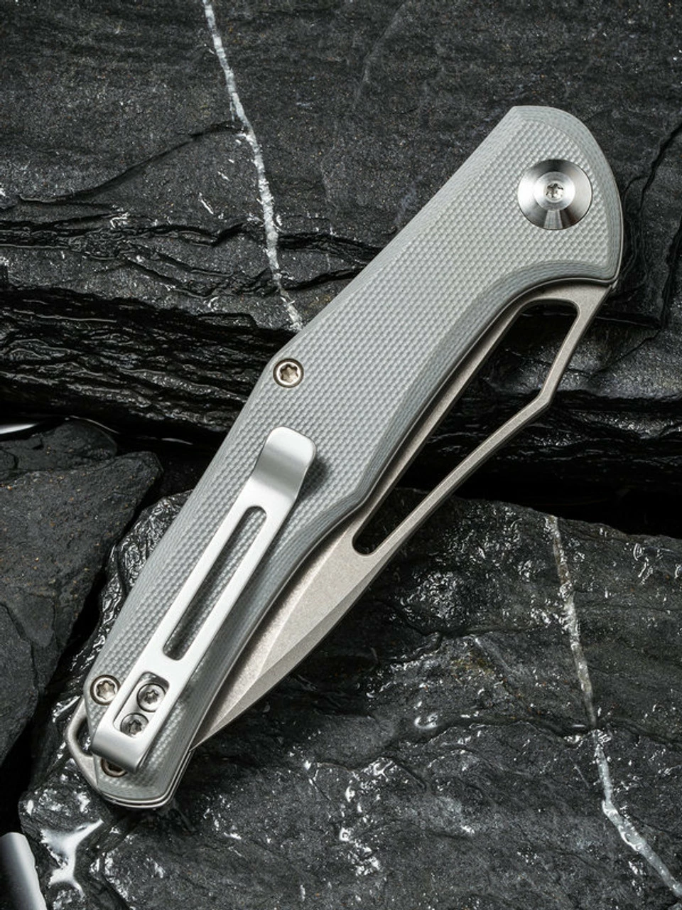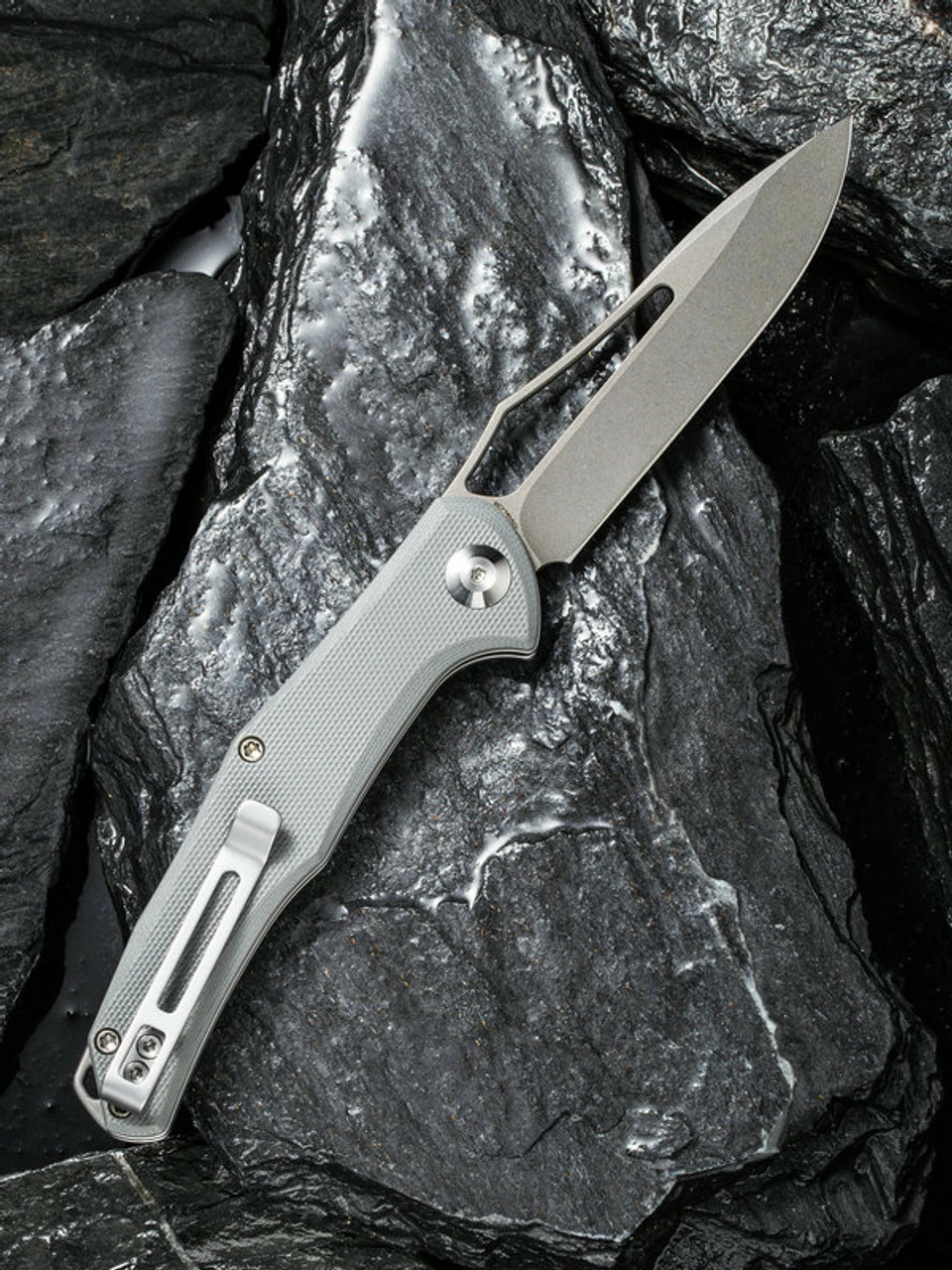 CIVIVI Fracture Folding Knife (C2009B)- 3.35″ Stonewashed 8Cr14MoV Drop Point Blade, Gray G-10 Handles
