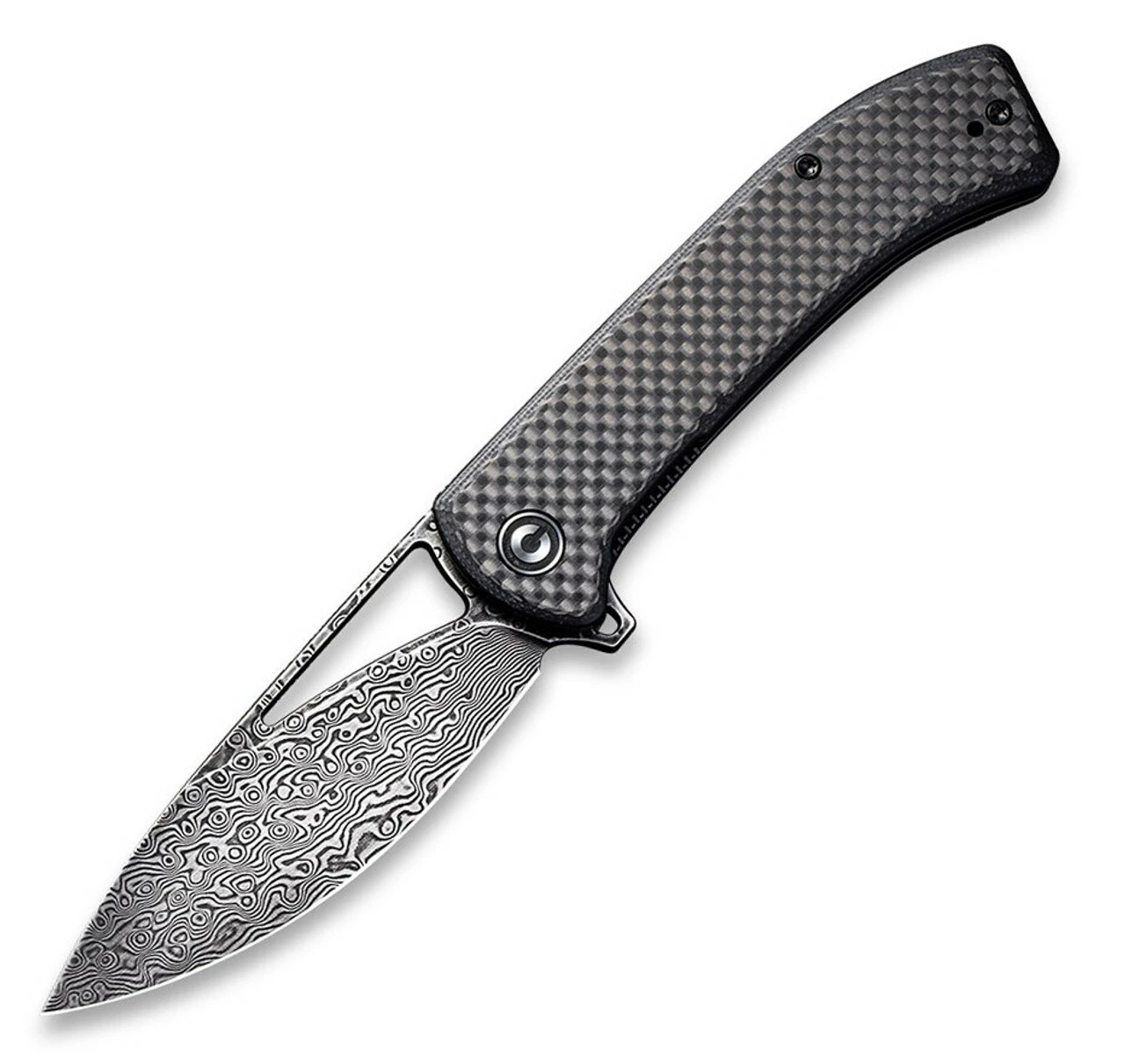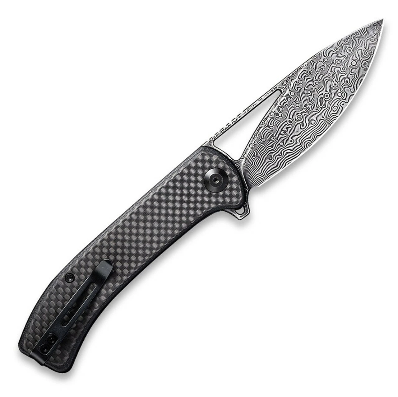 CIVIVI Riffle Folding Knife (C2024DS-1)- 3.46″ Damascus Drop Point Blade, Black G-10 and Twill Carbon Fiber Overlay Handles