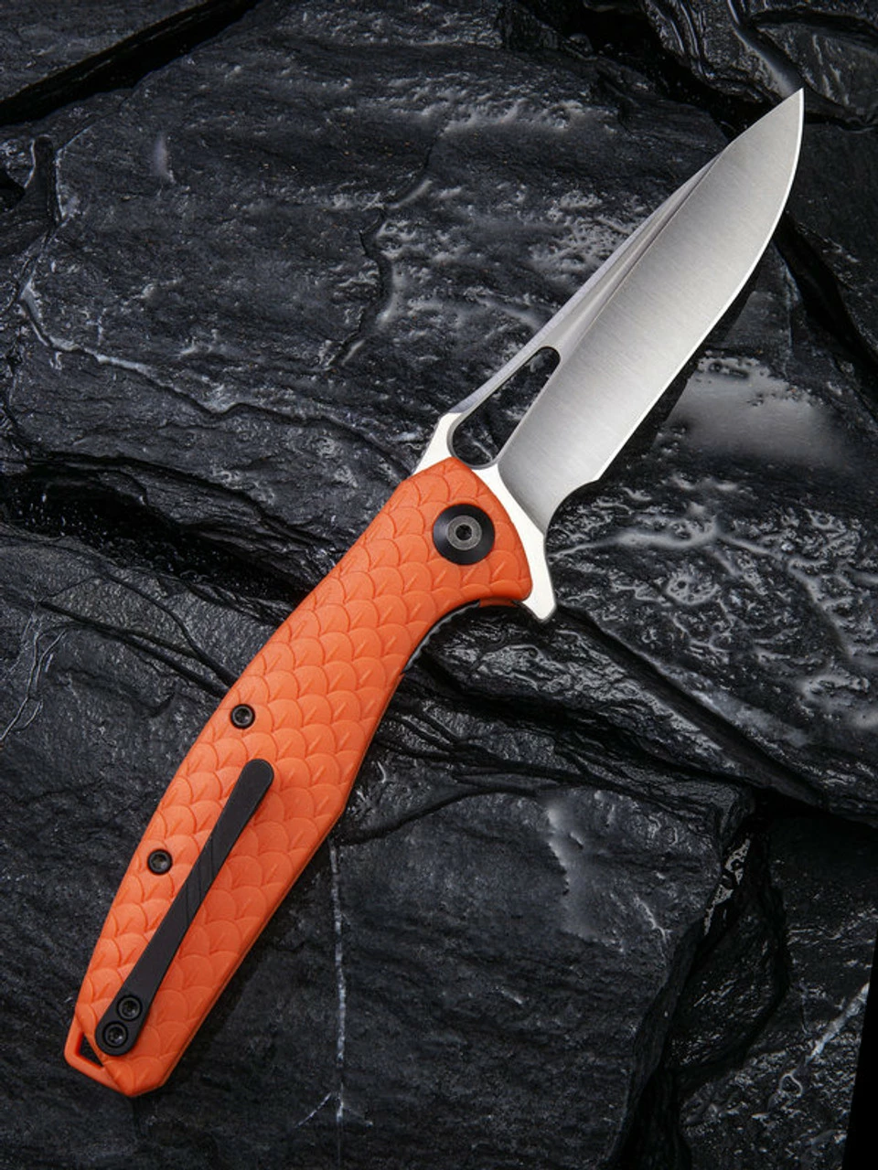 CIVIVI Wyvern Folding Knife (C902D)- 3.45″ Satin D2 Drop Point Blade, Orange FRN Handles