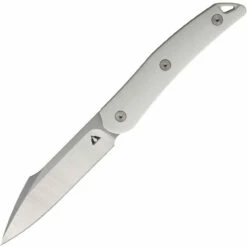 CMB Kisame Fixed Blade Knife (CMBFB01A) 3.50″ 14C28N Satin Harpoon Plain Blade, White G-10 Handle