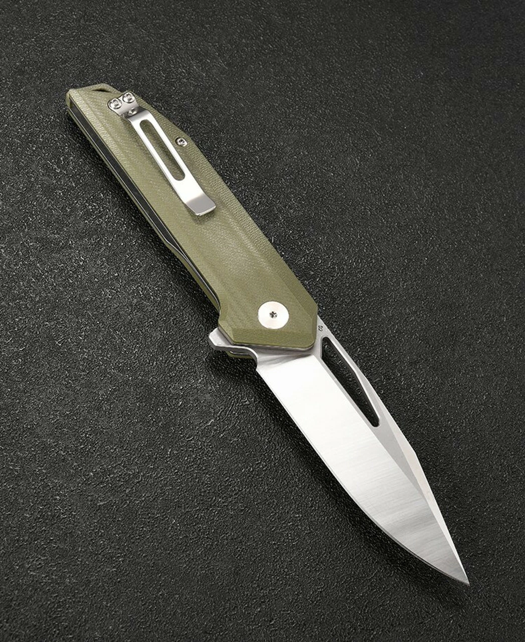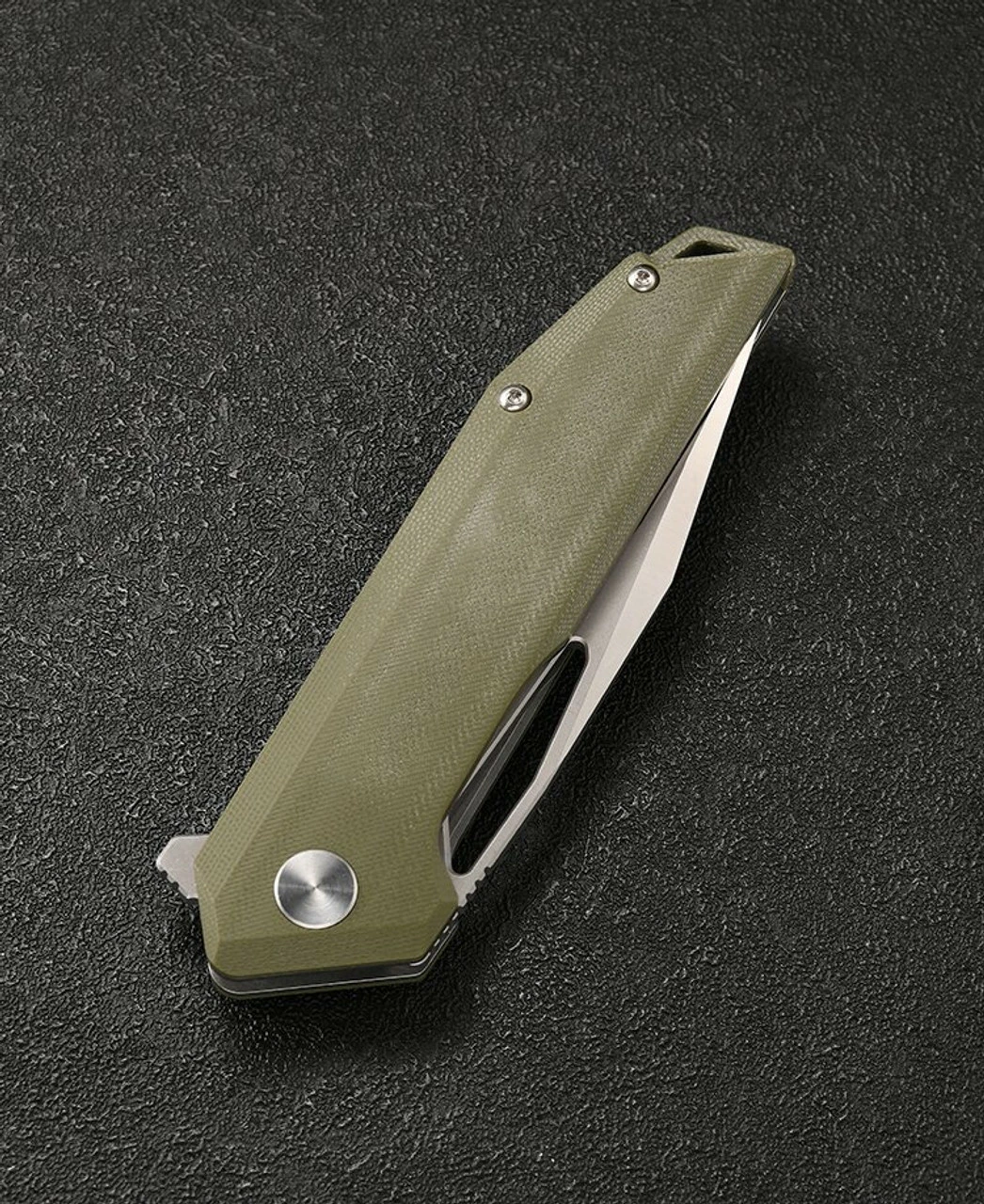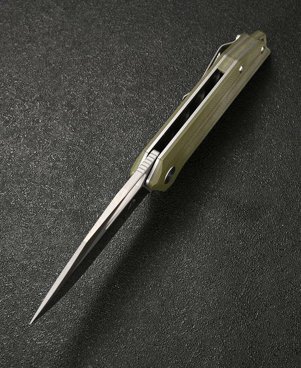 - Green G-10 handle.