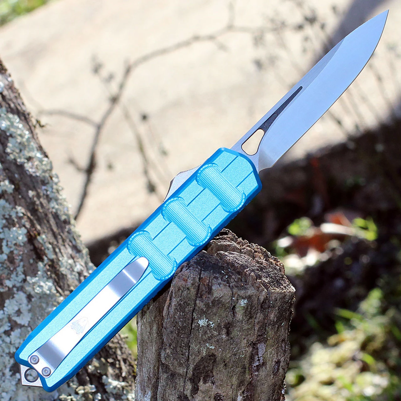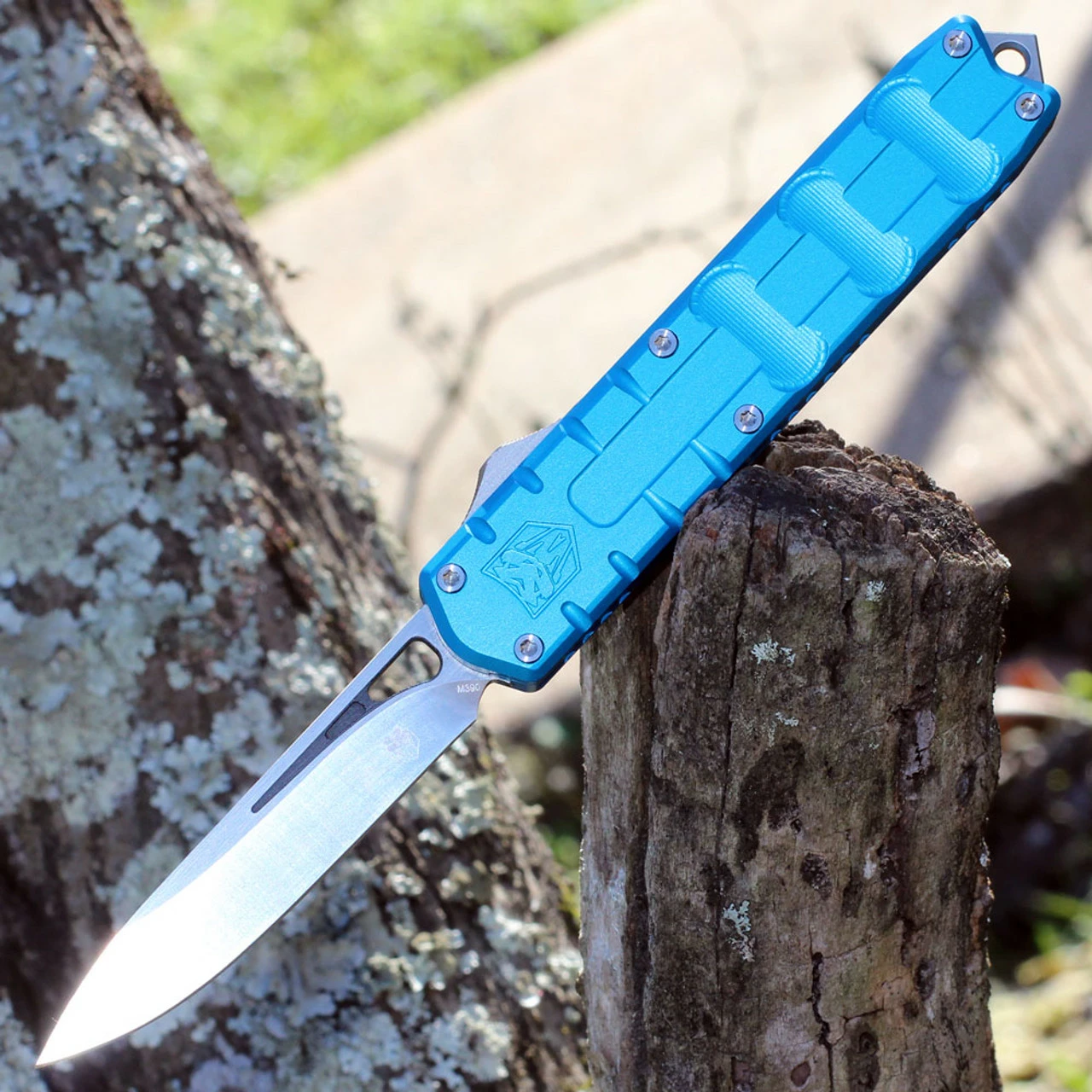 CobraTec Enforcer OTF (Out the Front) Automatic Knife (CTEBLUM390DNS) – 3.25″ M390 Satin Drop Point Blade, Blue 6061-T6 Chassis Aluminum Handle
