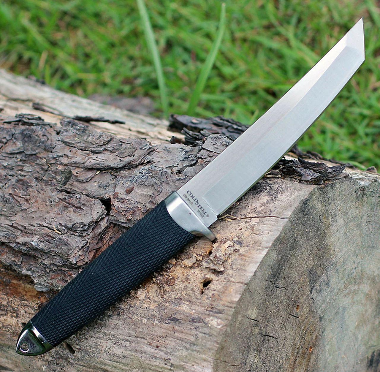 There isn’t a person working in the knife industry today that knows more about the Tanto than Cold Steel does. It was, after all, Cold Steel who invented and popularized this knife style in the early 1980’s. We have spent millions of dollars persuading the public, both through advertising and live or videotaped demonstrations, of the Tanto’s many advantages. We have been producing Tanto’s for more than 30 years now, and there is still no factory or custom knifemaker around making a Tanto that can approach the cutting, slashing or piercing power of one that is manufactured by Cold Steel. All of our Tantos feature a deep lustrous satin finish on the hollow ground blade bevels and a contrasting line grain finish on the blade flats. This technique highlights our state of the art grinding methods and emphasizes the Cold Steel Tanto’s unique appearance. In addition, the Tanto’s come with our famous flattened oval Kraton® handle. The oval shape provides a solid grip and resists rolling or twisting in the hand under hard use, the kind that, over time, would destroy a lesser knife. The use of Kraton® in knife handles is another Cold Steel innovation. Kraton® is an unparalleled space age material that won’t crack or rot and is immune to the ravages of bad weather. The tapered, solid steel pommel is another important Tanto feature that should not be ignored. Lynn Thompson designed it to concentrate the full force of a crushing blow in a small area so that even a moderately powerful blow can be remarkably effective in disarming or otherwise incapacitating an attacker. The Tanto series knives in San Mai® all come with a thick, high quality Secure-Ex™ sheath that is sure to give years of hard service and keep your Tanto at your side, ready for action.