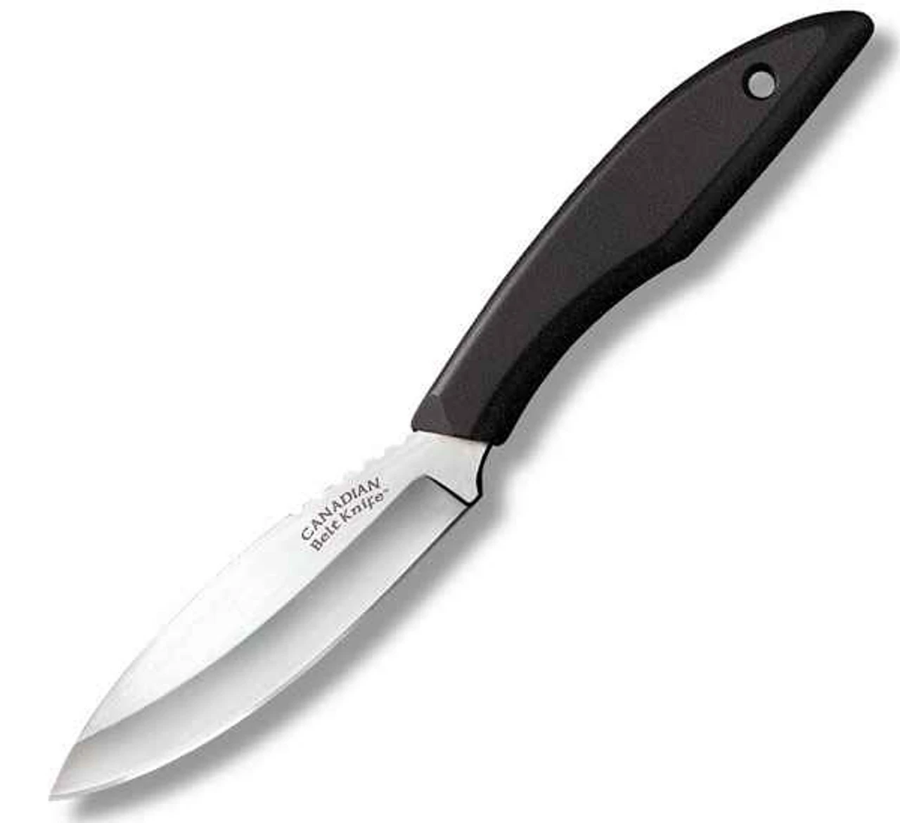 The Cold Steel Canadian Belt Knife takes inspiration from a 1950s classic. It has all the features that made the original an award-winning, international favorite. Our more contemporary version is made out of 4116 Krupp Stainless steel and hollow ground to a razor edge. It will glide through just about any material because its elliptical profile is very efficient at reducing cutting drag. The Polypropylene handle is equally efficient, fitting snugly in virtually any hand. Its slightly offset in relation to the blade to keep ones fingers safely out of the way. Light and tough enough to endure hard knocks, it will never break or fall apart in the way a traditional wood handle is prone to do. This 2-ounce blade comes complete with a pouch style black Cordura sheath. Its light, slim and compact enough to carry on your belt or slung from a cord around your neck day in and day out.