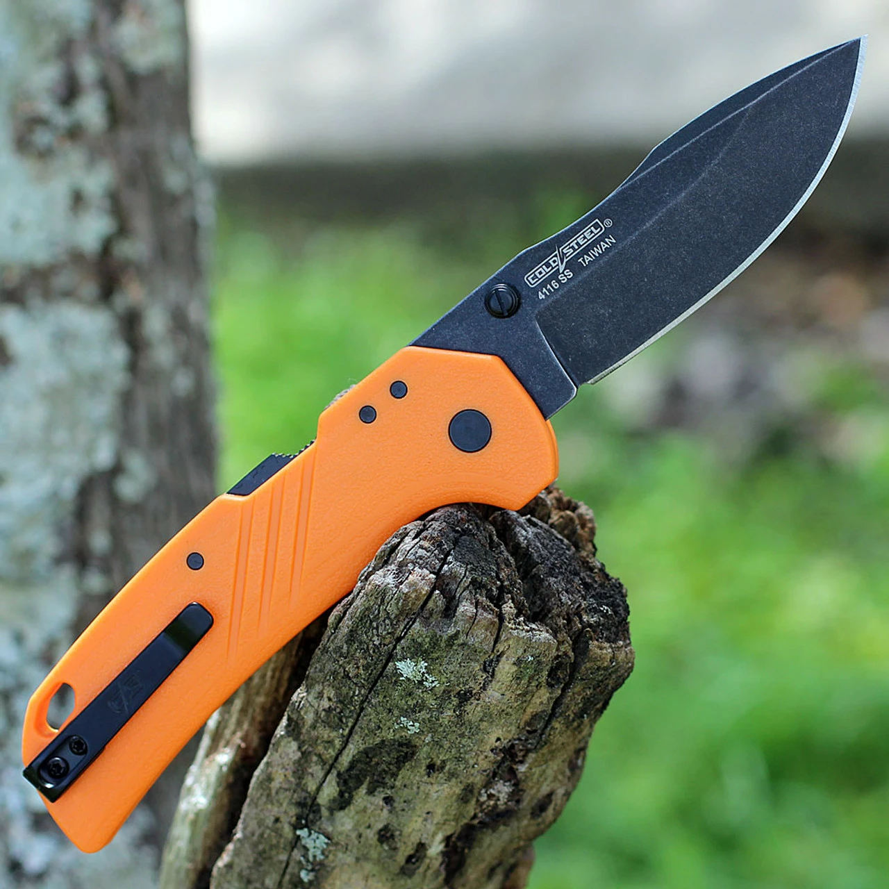 Cold Steel Engage (CS-FL-30DPLD-BOZ) Folding Knife – 3.0″ Black 4116SS Clip Point Plain Blade, Blaze Orange GFN Handle