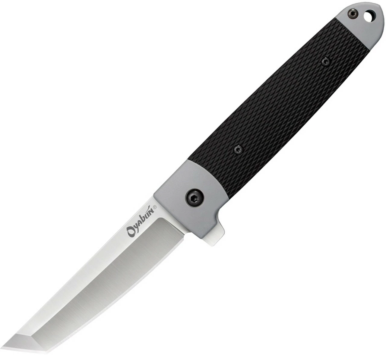 Cold Steel Oyabun Folding Knife 26T, 3.5″ 4034SS Satin Tanto Blade, Black Checkered Kray-Ex Scales Handle
