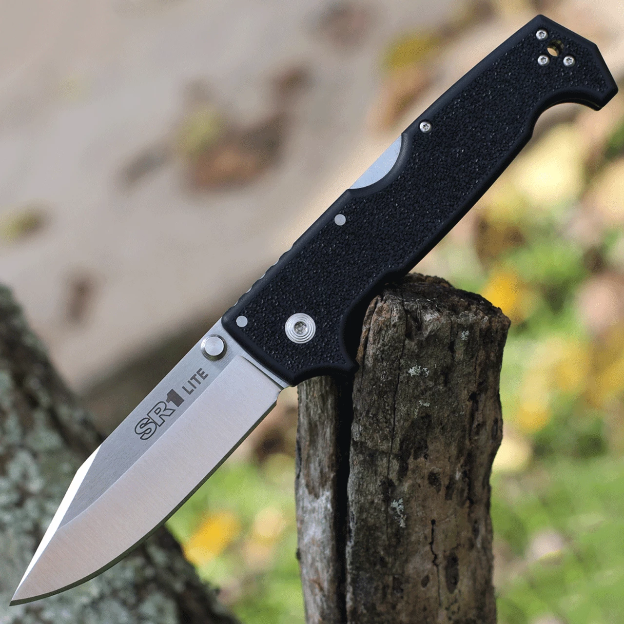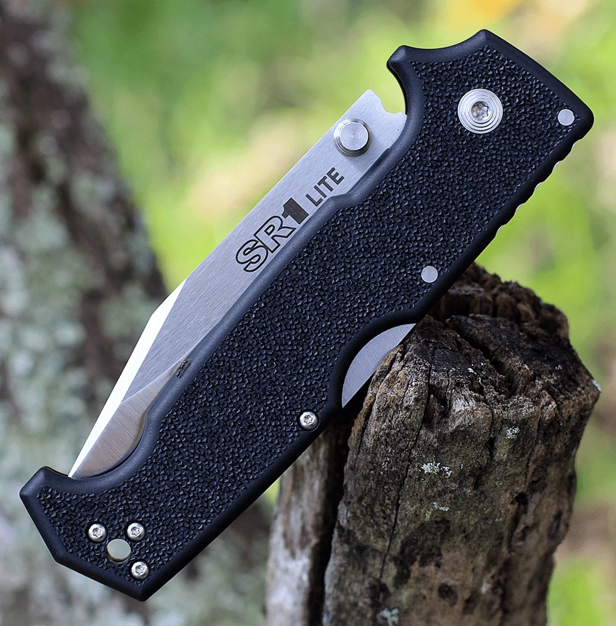 The Cold Steel SR1 Lite Folding Knife is lightweight but packs a punch. The wide clip point blade offers good leverage when cutting. If you’re looking for versatility in your everyday carry knife, look no further than this lock back folder.