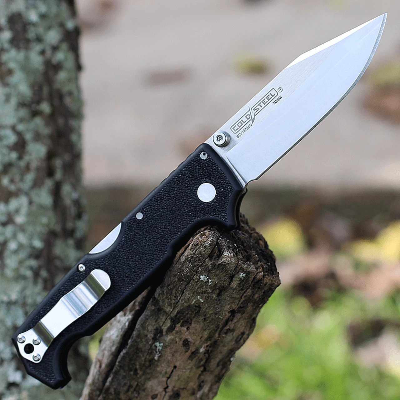 Cold Steel SR1 Lite Folding Knife (62K1) – 4″ 8Cr13Mov Satin Clip Point Blade, Black Griv-Ex Handle