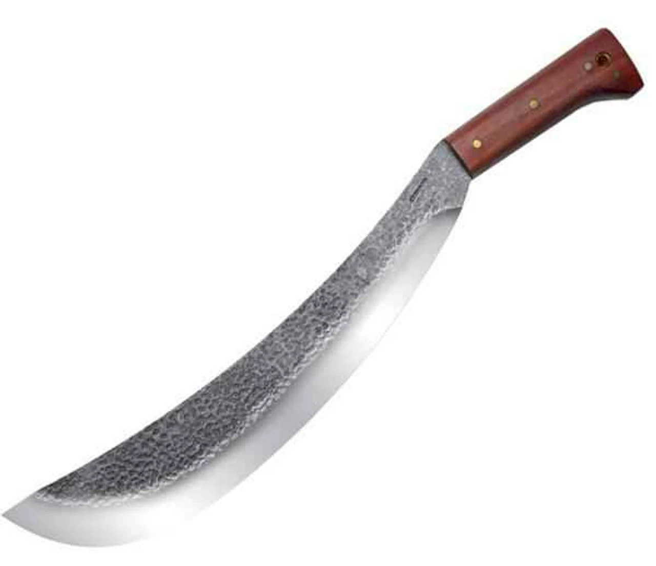 Condor Engineer Bolo Machete. 20 1/8″ overall. 15″ 1075 high carbon steel blade with classic finish. Full tang. Brown hardwood handle. Lanyard hole. Brown leather belt sheath.