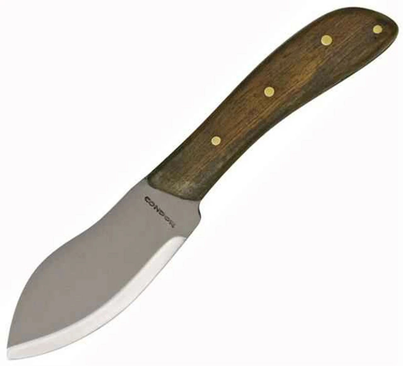 Condor Nessmuk Knife. 8 3/4″ overall. 4 1/8″ 1075 high carbon steel blade with bead blast finish. Full tang. Walnut handle. Black leather belt sheath.
