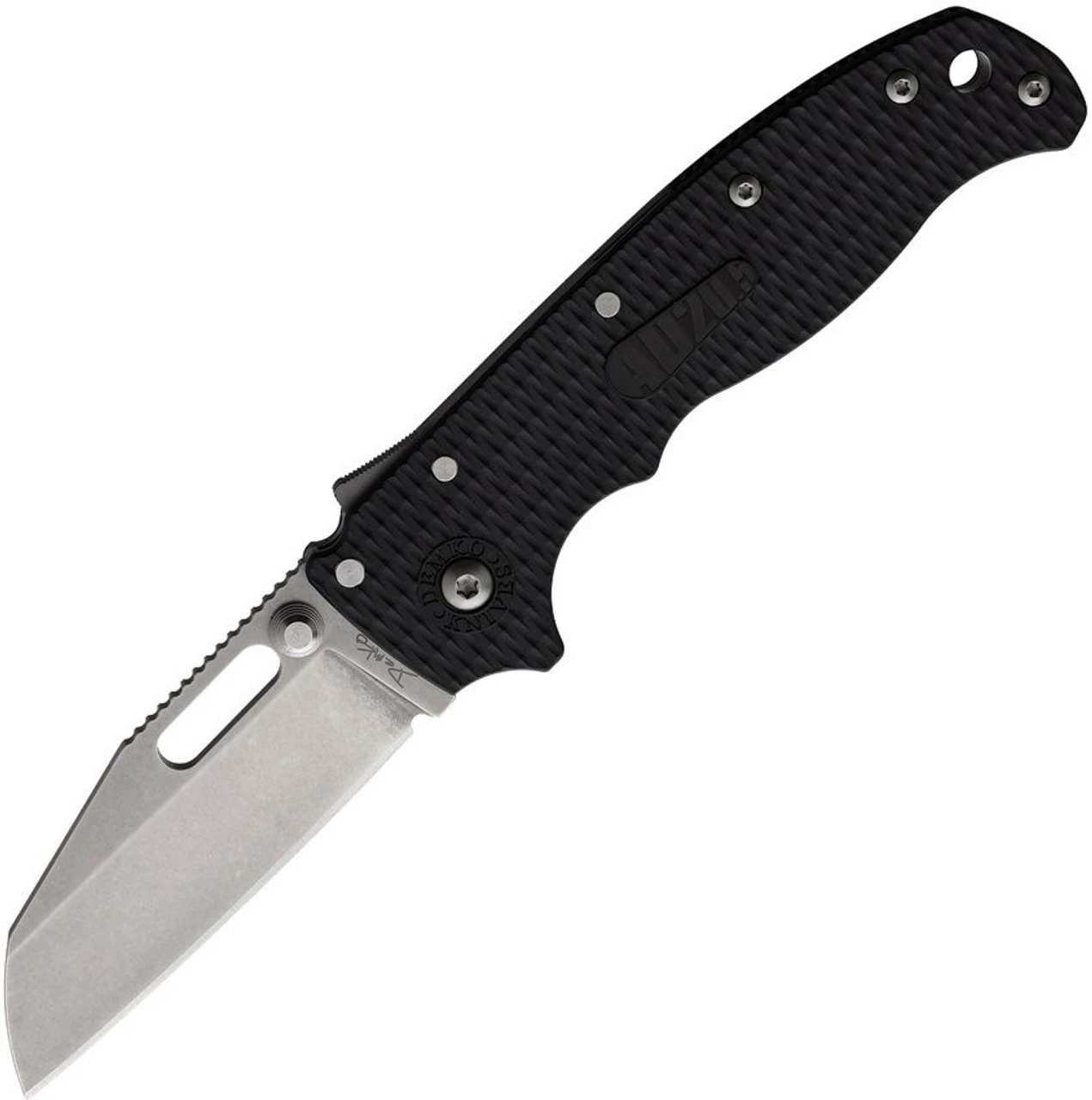 Demko AD20.5 Shark Lock – 3.25″ D2 Stonewash Wharncliffe Blade, Black Textured Grivory Handle