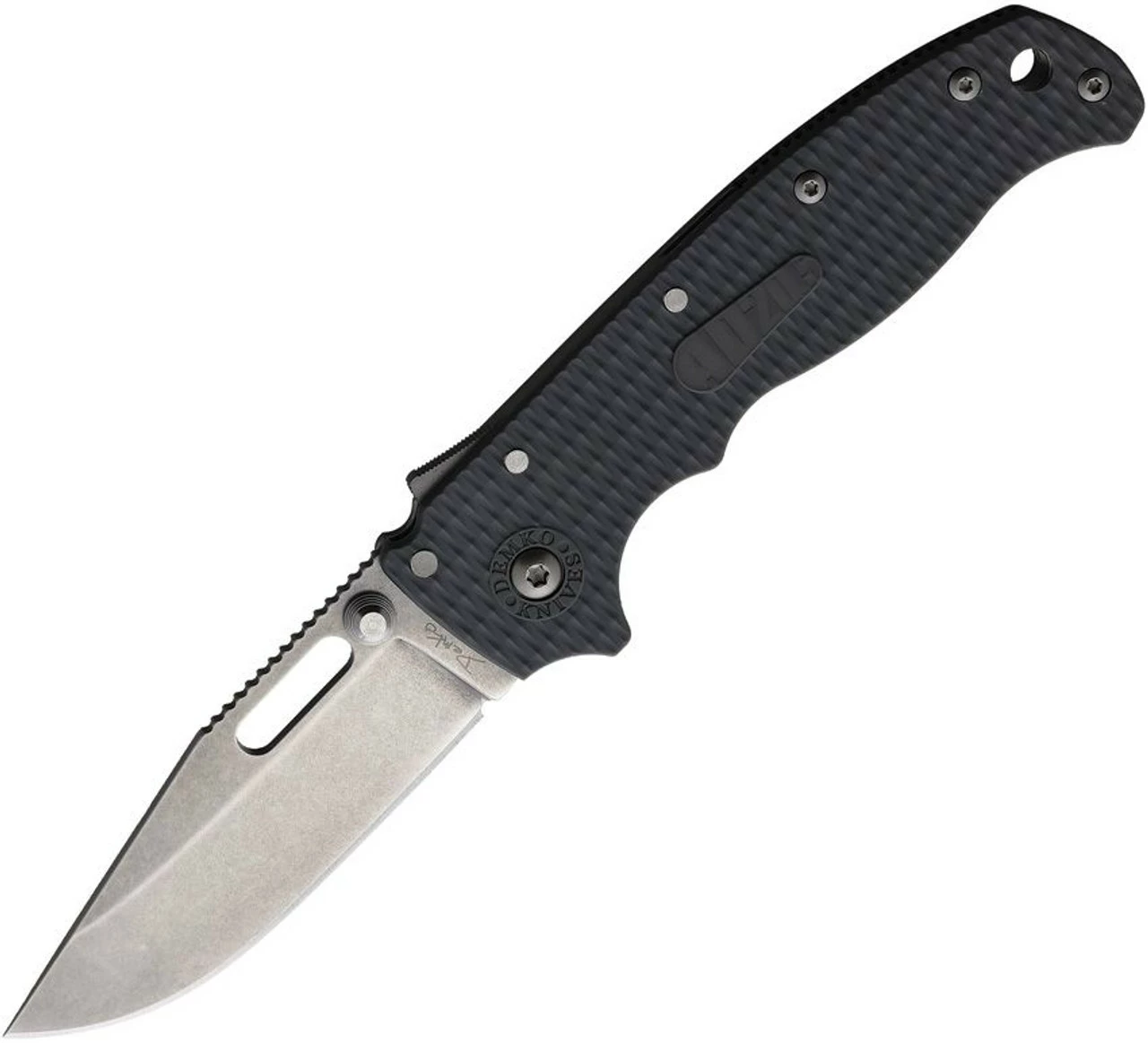 Demko AD20.5 Shark Lock – 3.25″ AUS-10A Stonewash Clip Point Blade, Gray Textured Grivory Handle