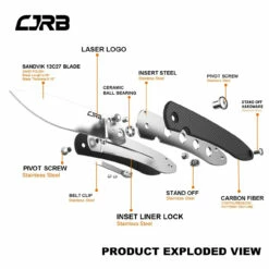 CJRB Cutlery Crag Liner Lock J1904-CF, 3.3″ D2 Stonewash Plain Blade, Carbon Fiber Handle