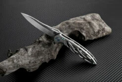 Artisan Falcon ATZ1809GGYS, 3.62″ S35VN Plain Blade, Gray Carbon Fiber/Titanium Handle