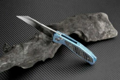 Artisan Falcon ATZ1809GBUM, 3.62″ M390 Plain Blade, Blue Carbon Fiber/Titanium Handle